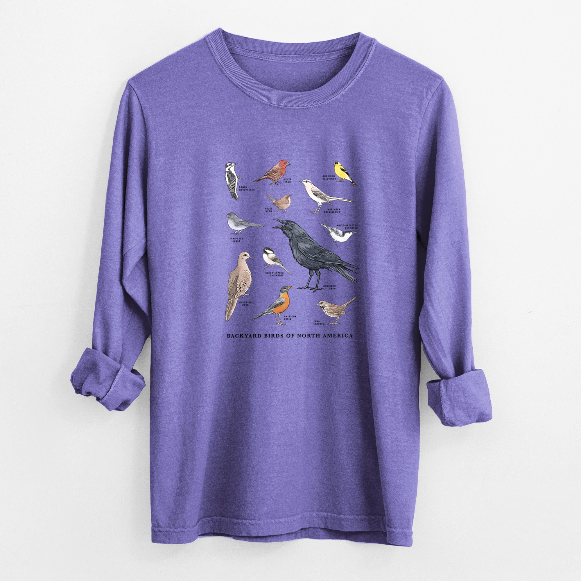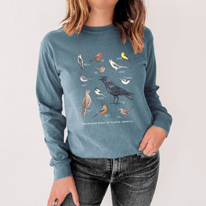 Common Backyard Birds of North America - Unisex Comfort Colors 100% Cotton Long Sleeve