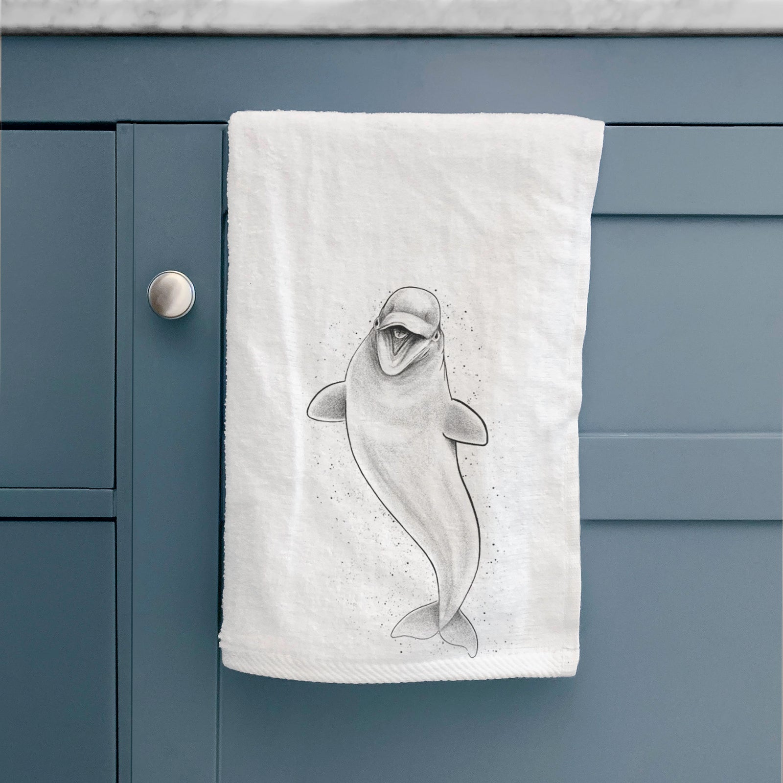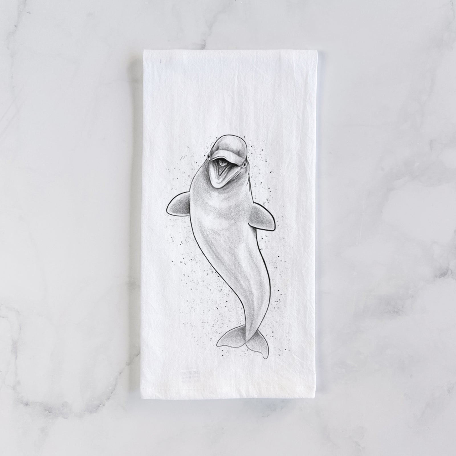 Happy Beluga Whale - Delphinapterus leucas Tea Towel