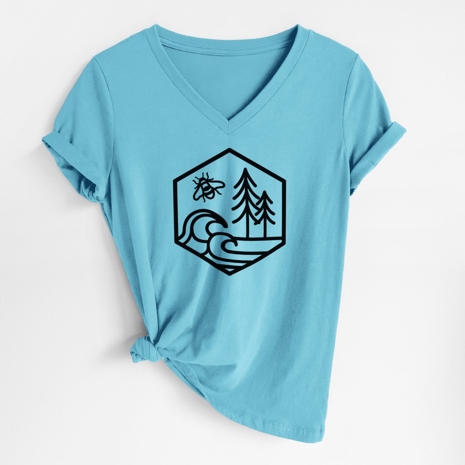Harmonious Hexagon - Bees, Seas, Trees - Women's 100% Recycled V-neck
