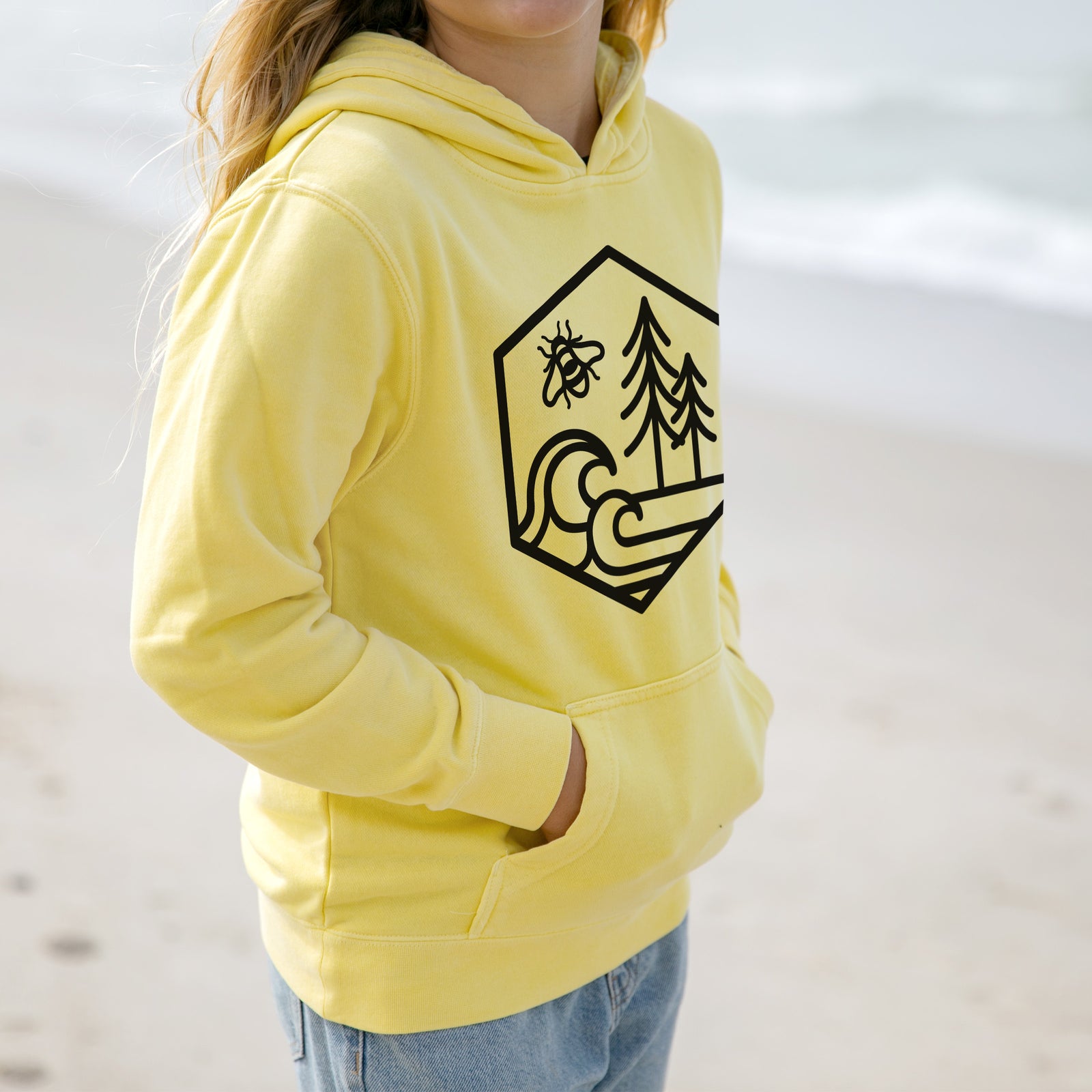 Harmonious Hexagon - Bees, Seas, Trees - Youth Pigment Dyed Hoodie
