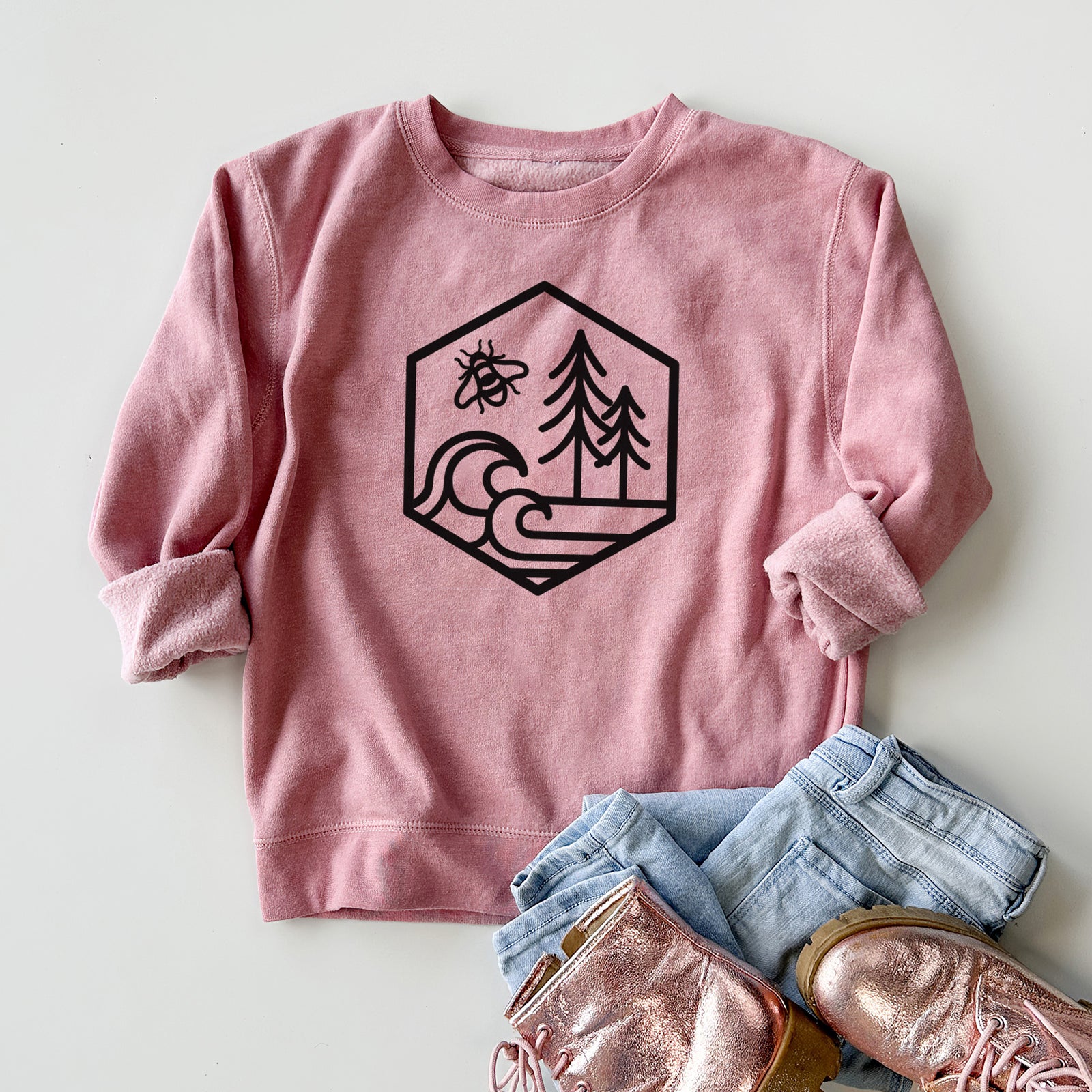 Harmonious Hexagon - Bees, Seas, Trees - Youth Lightweight Crewneck Sweatshirt