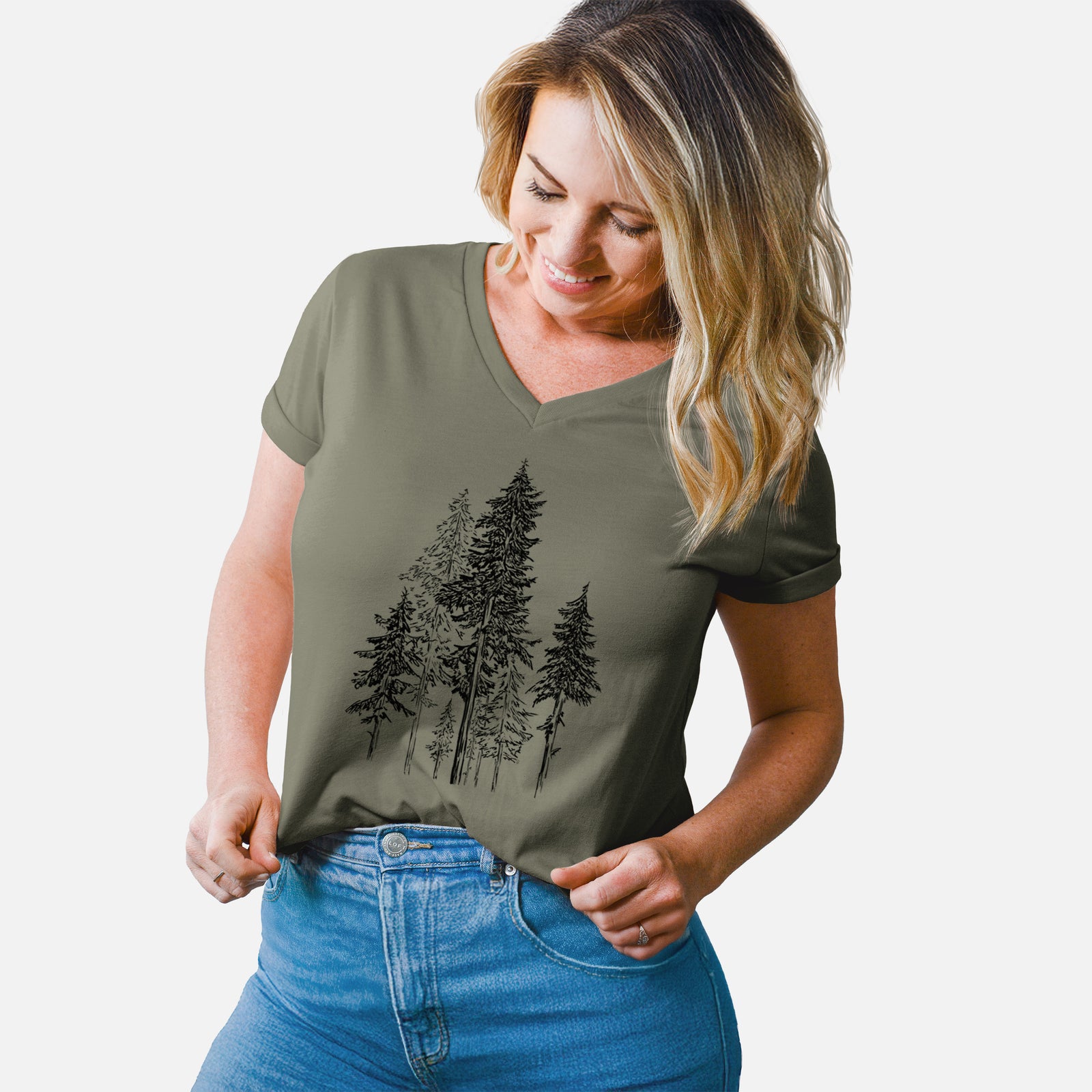 Hemlock Forest - Women's Lightweight Relaxed Fit 100% Cotton V-neck