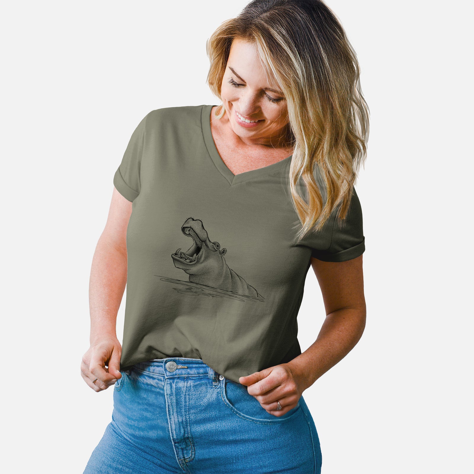 Hippo - Hippopotamus amphibius - Women's Lightweight Relaxed Fit 100% Cotton V-neck