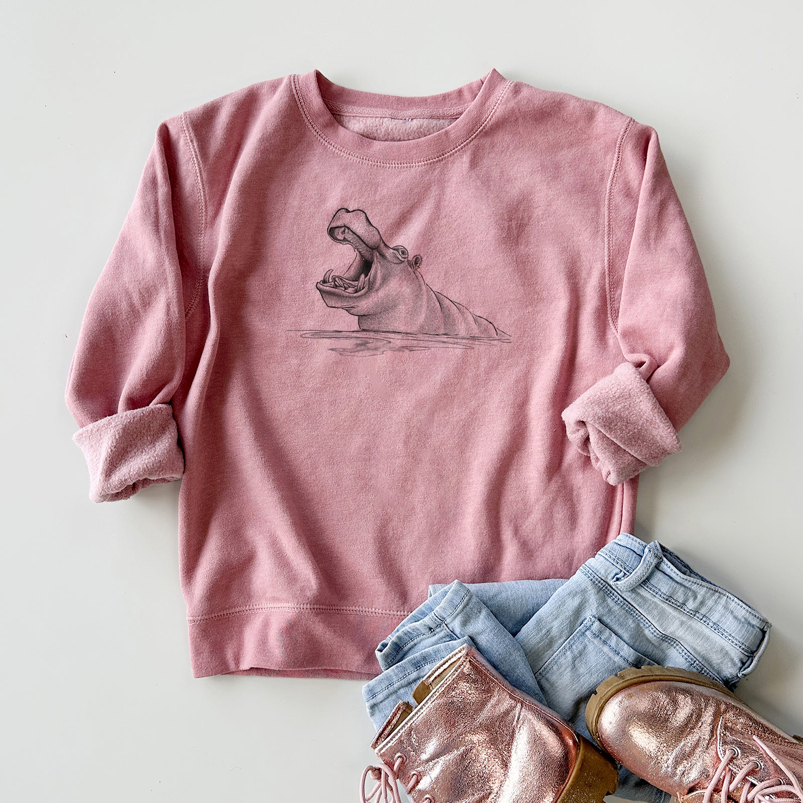 Hippo - Hippopotamus amphibius - Youth Lightweight Crewneck Sweatshirt