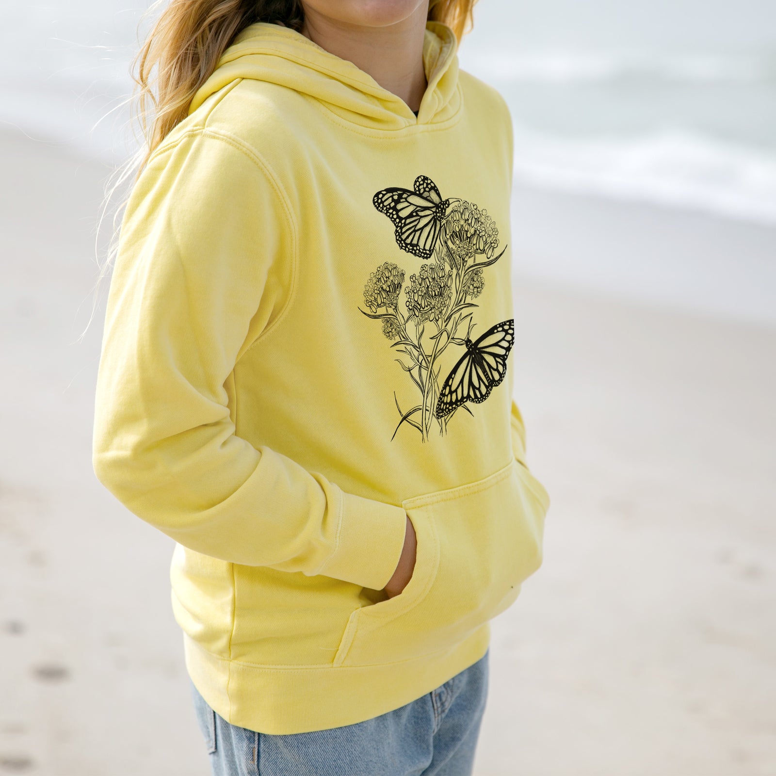 Narrowleaf Milkweed with Monarchs - Youth Pigment Dyed Hoodie
