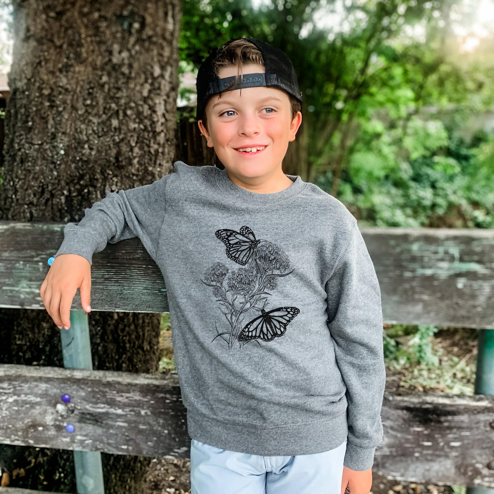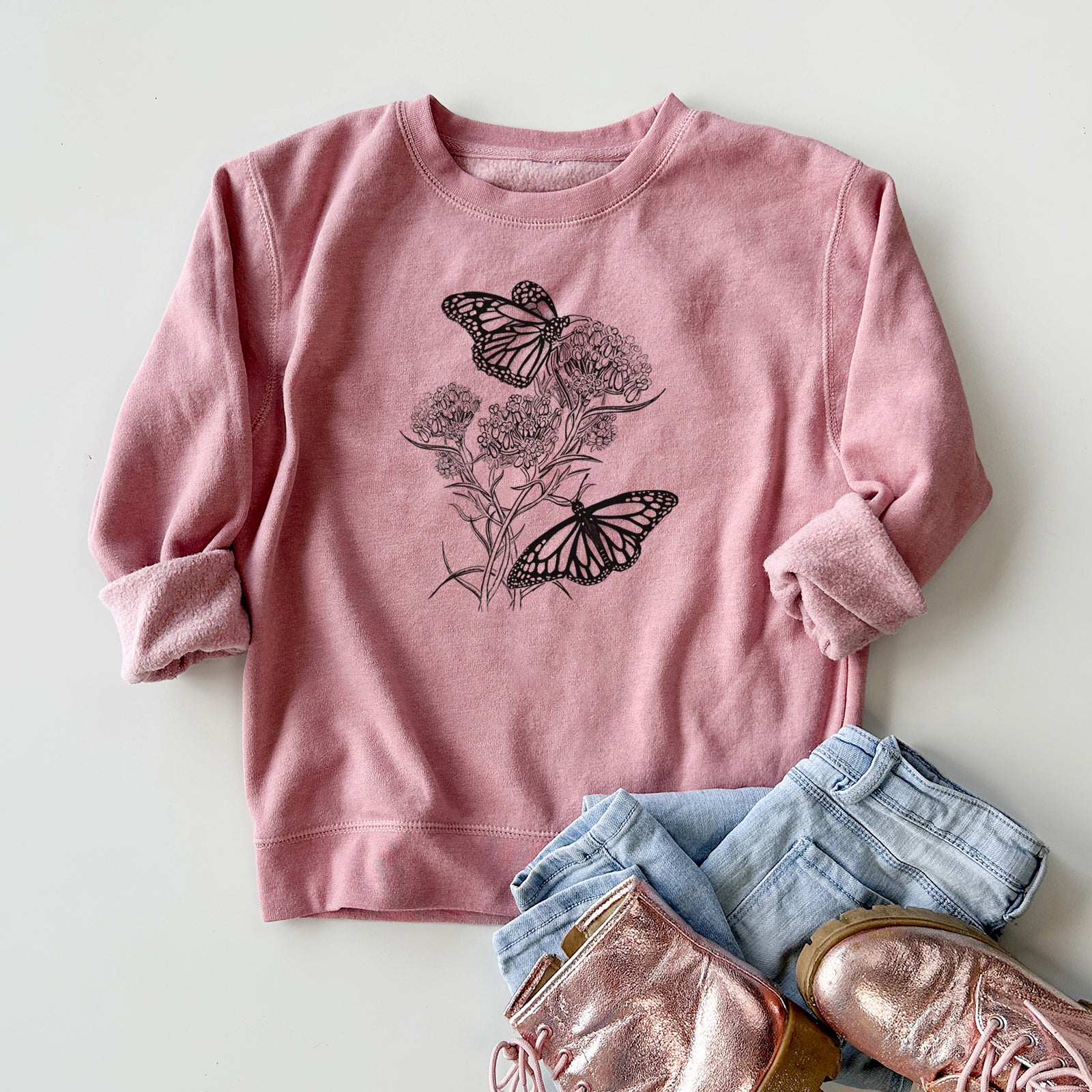Narrowleaf Milkweed with Monarchs - Youth Lightweight Crewneck Sweatshirt