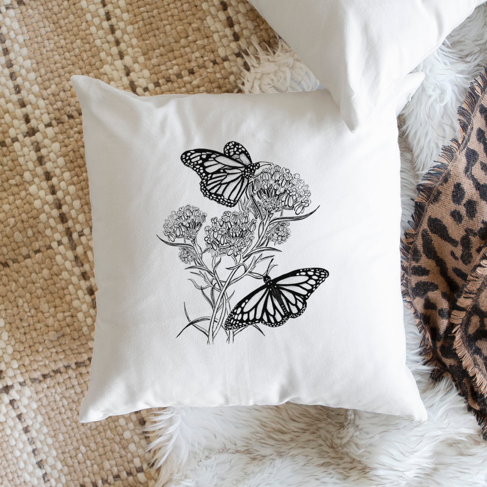 Narrowleaf Milkweed with Monarchs - Throw Pillow Cover