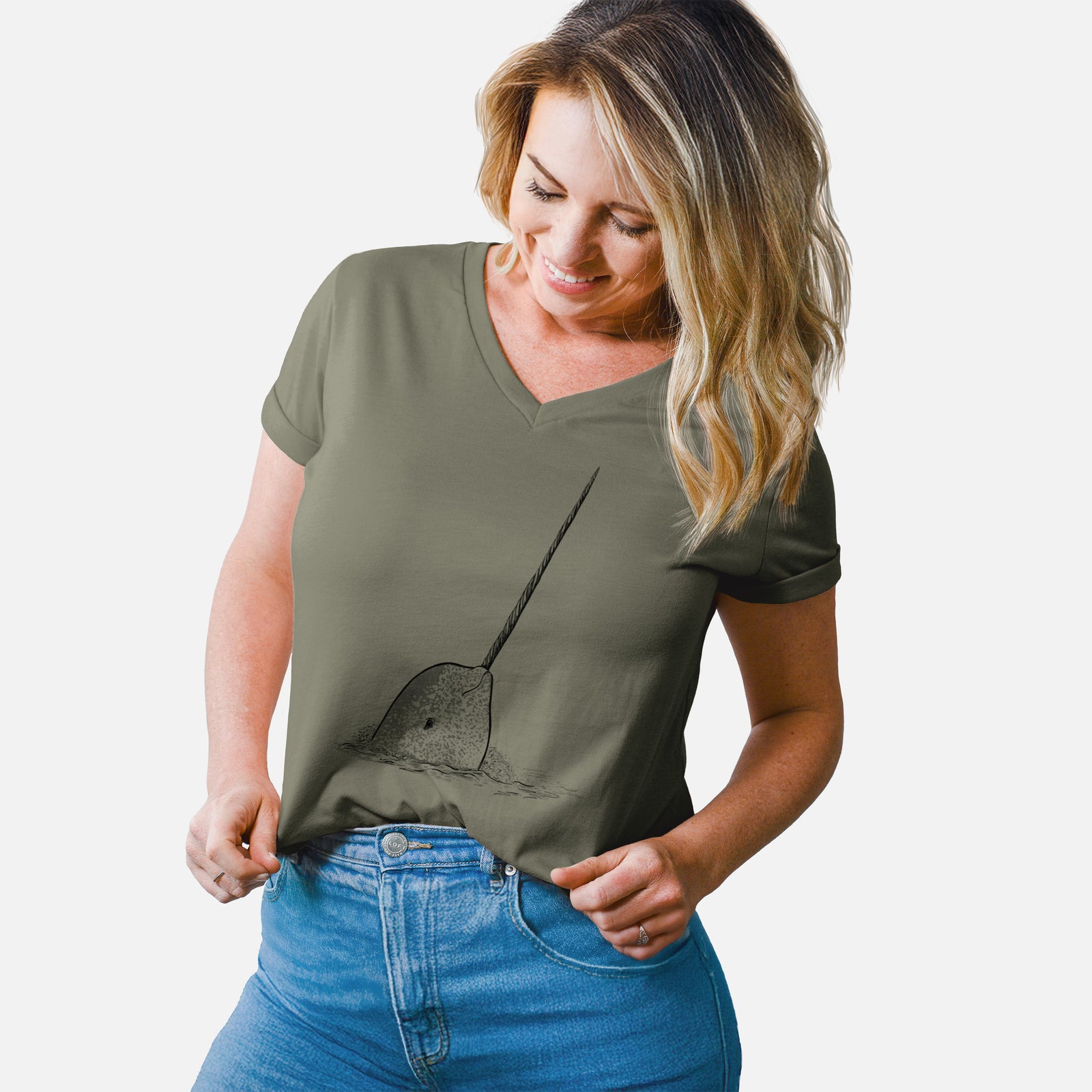 Narwhal - Monodon monoceros - Women's Lightweight Relaxed Fit 100% Cotton V-neck