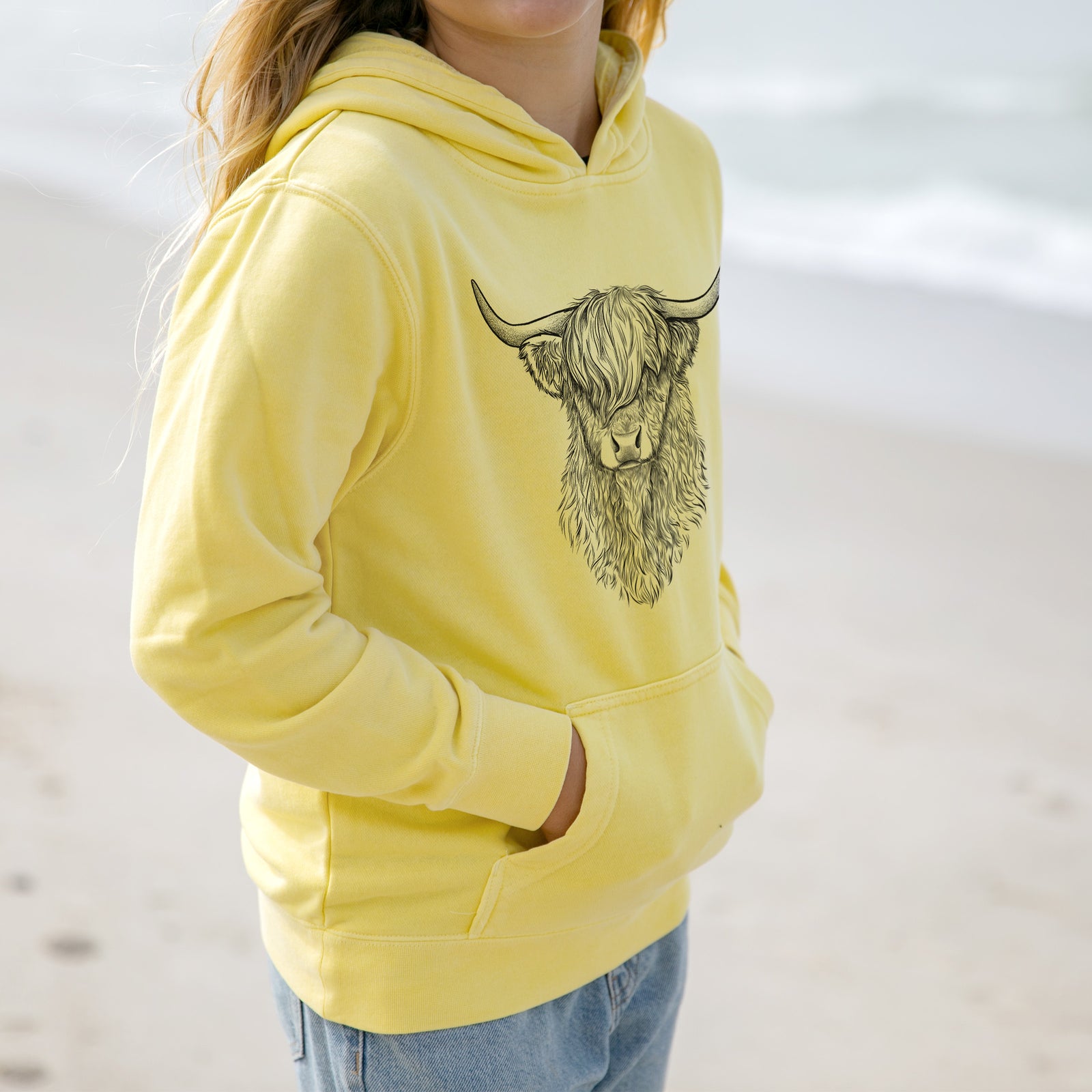 Scottish Highland Cow - Bos taurus taurus - Youth Pigment Dyed Hoodie