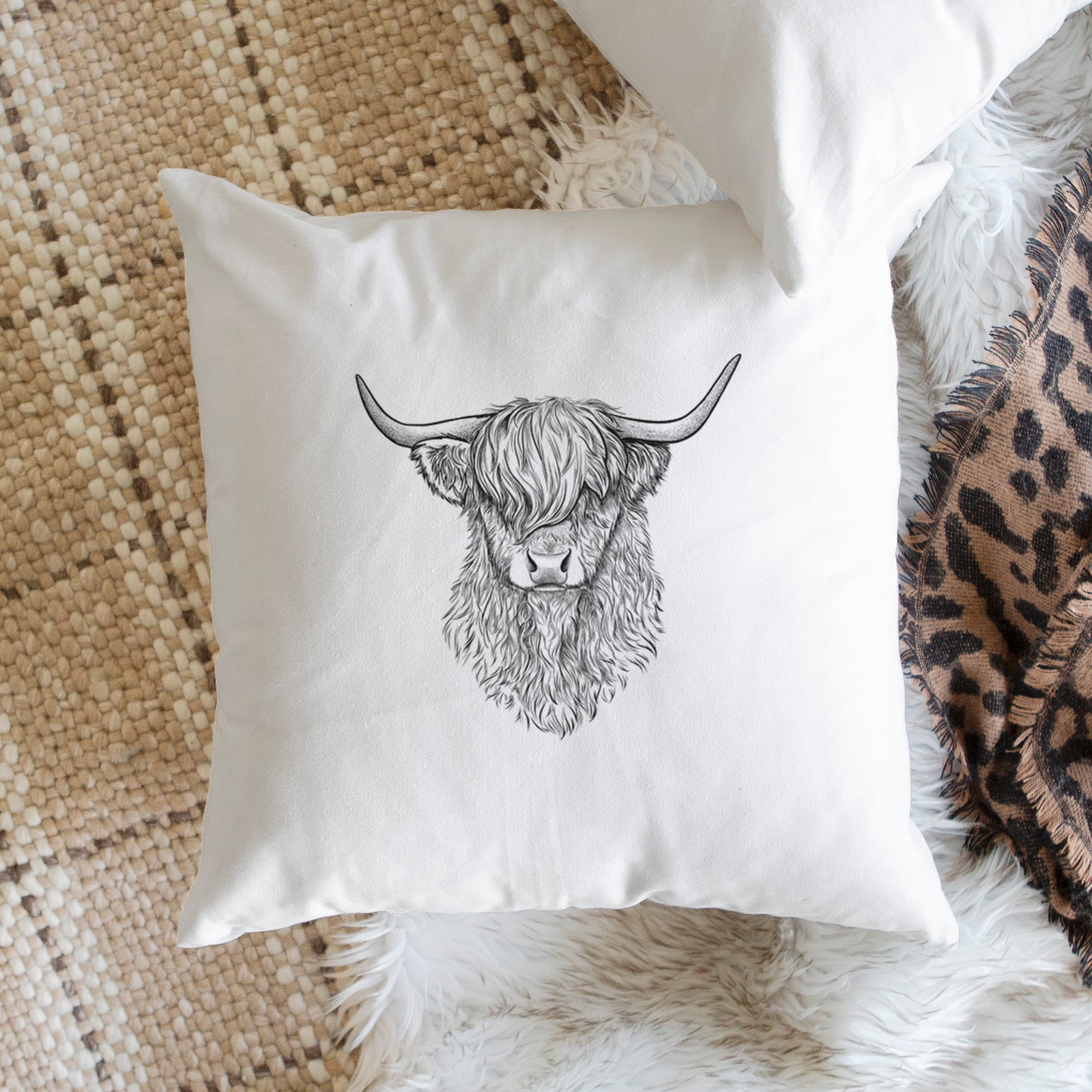Scottish Highland Cow - Bos taurus taurus - Throw Pillow Cover