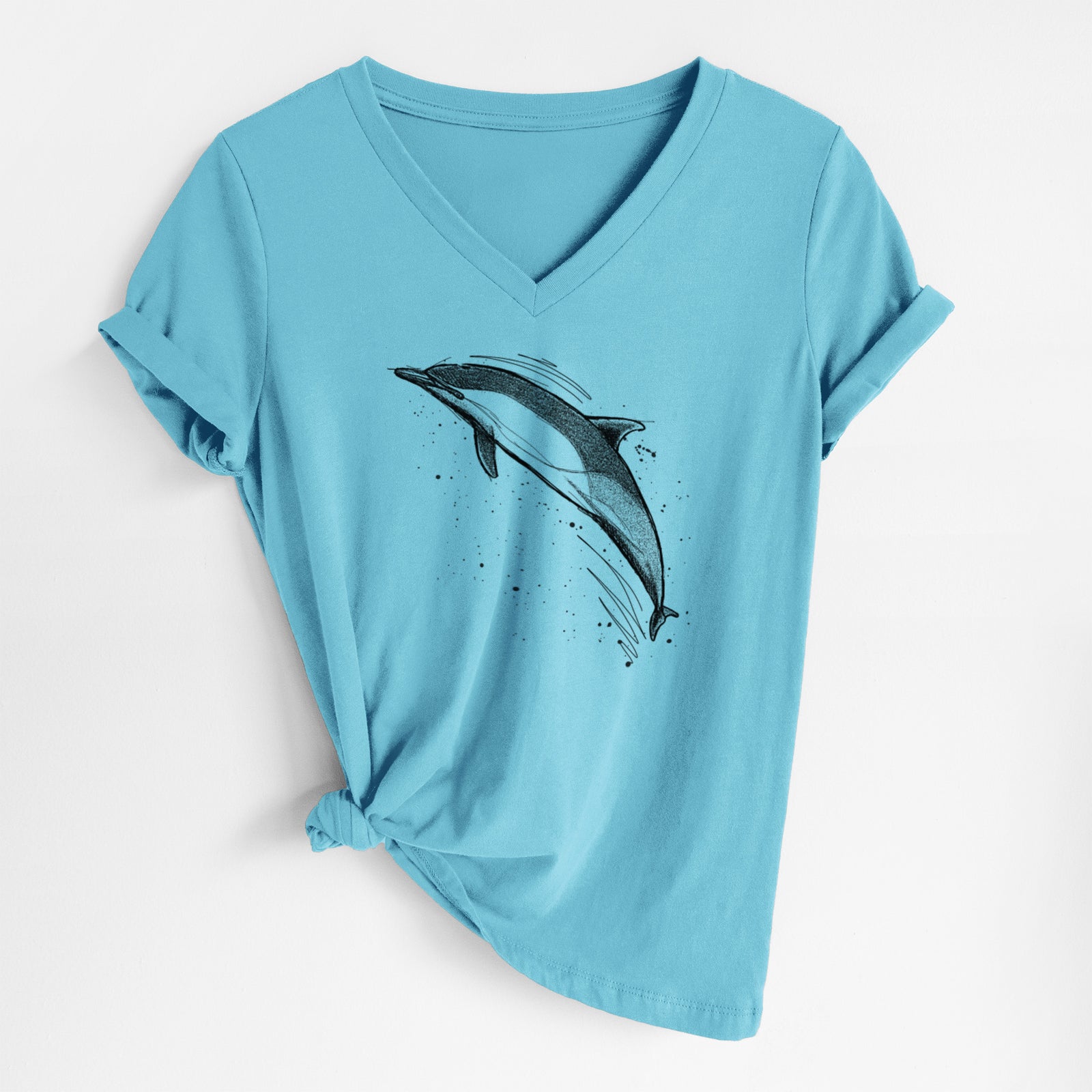 Short-Beaked Common Dolphin - Delphinus delphis - Women's Lightweight Relaxed Fit 100% Cotton V-neck