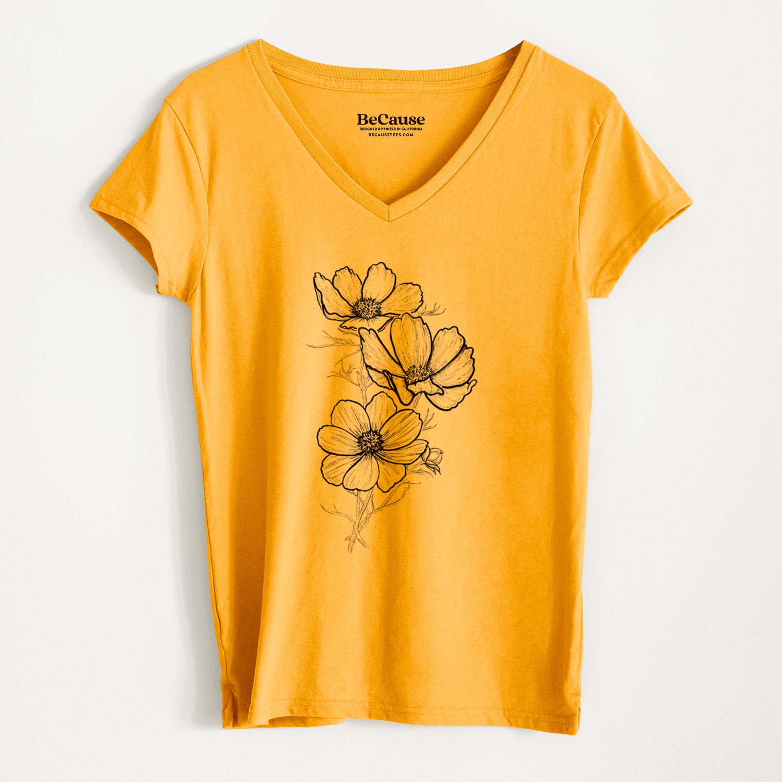 Garden Cosmos - Apollo White Cosmos bipinnatus - Women's Lightweight Relaxed Fit 100% Cotton V-neck