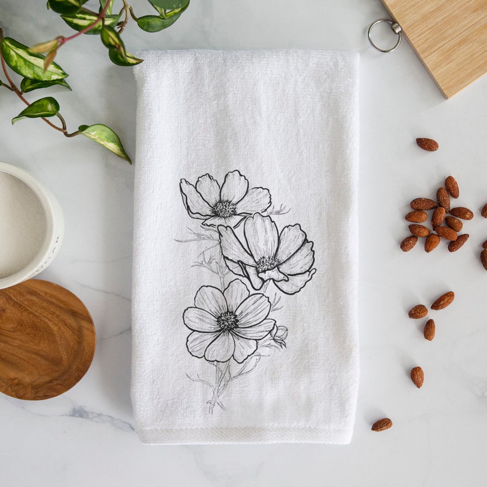 Garden Cosmos - Apollo White Cosmos bipinnatus Premium Decorative Hand Towel