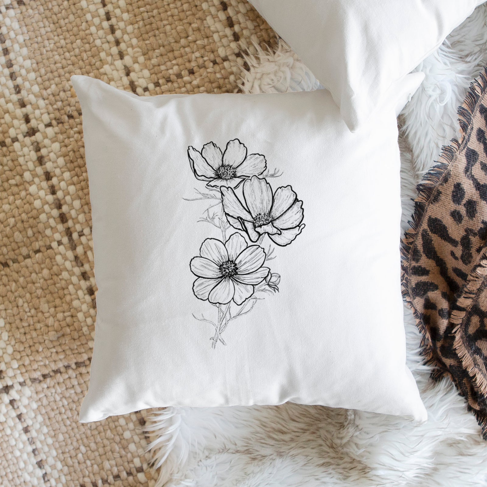 Garden Cosmos - Apollo White Cosmos bipinnatus - Throw Pillow Cover