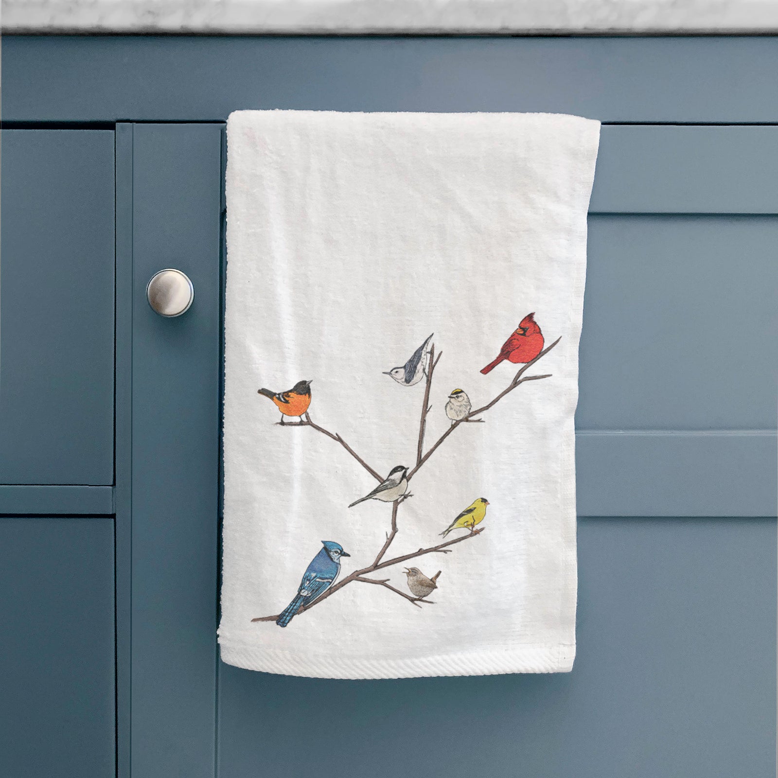 Backyard Birds Gathering Premium Hand Towel
