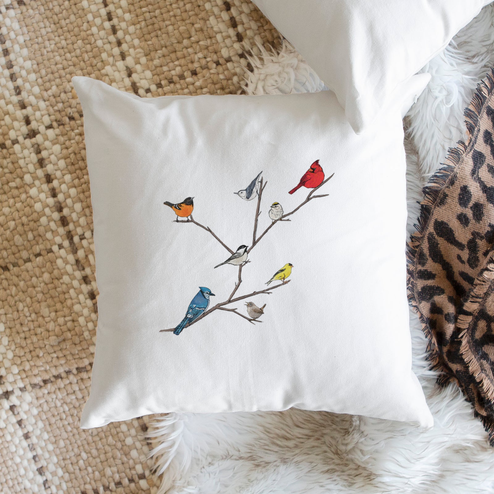 Backyard Birds Gathering - Throw Pillow Cover