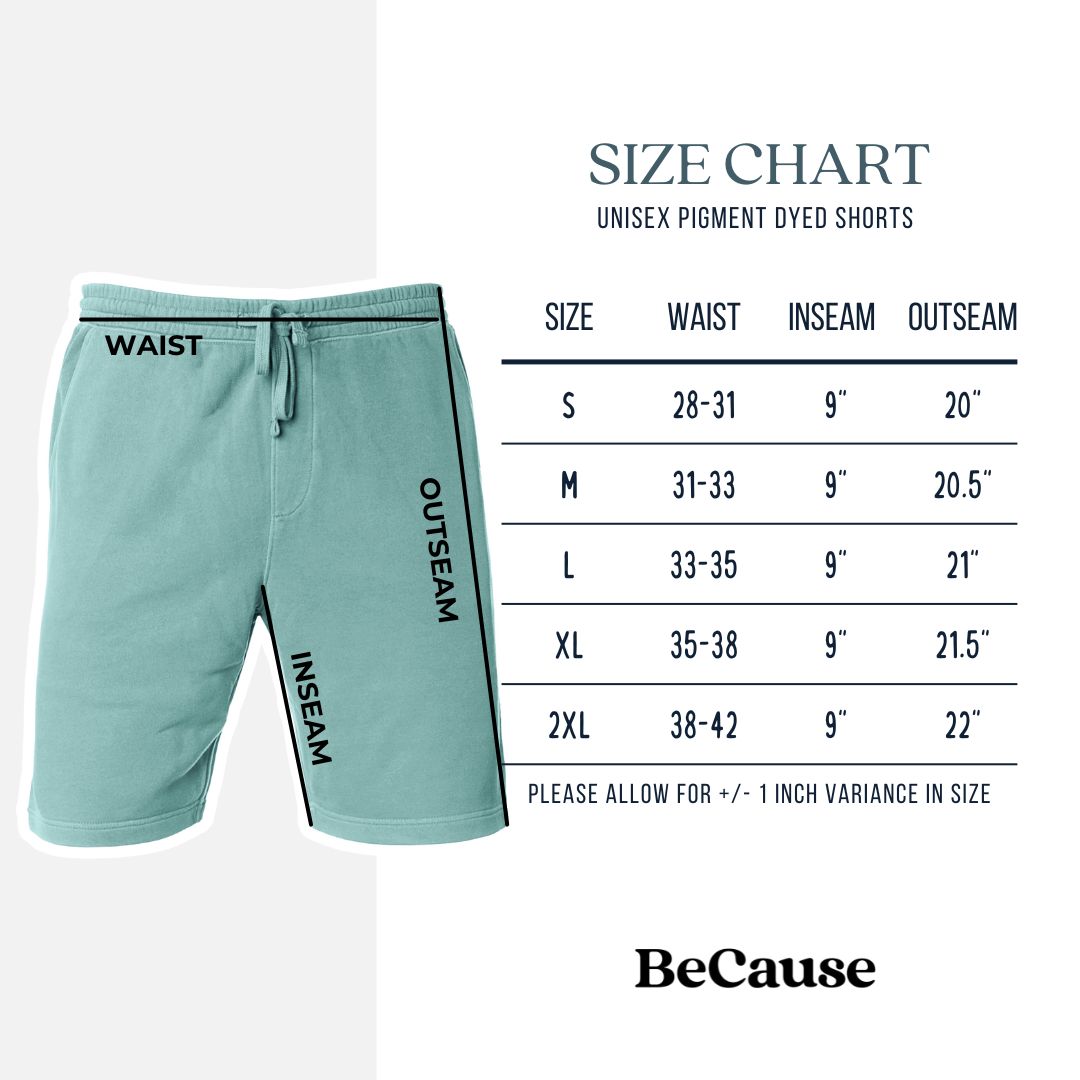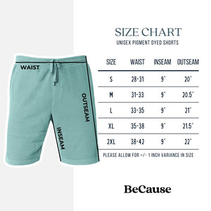 Unisex Pigment Dyed Shorts Size Chart