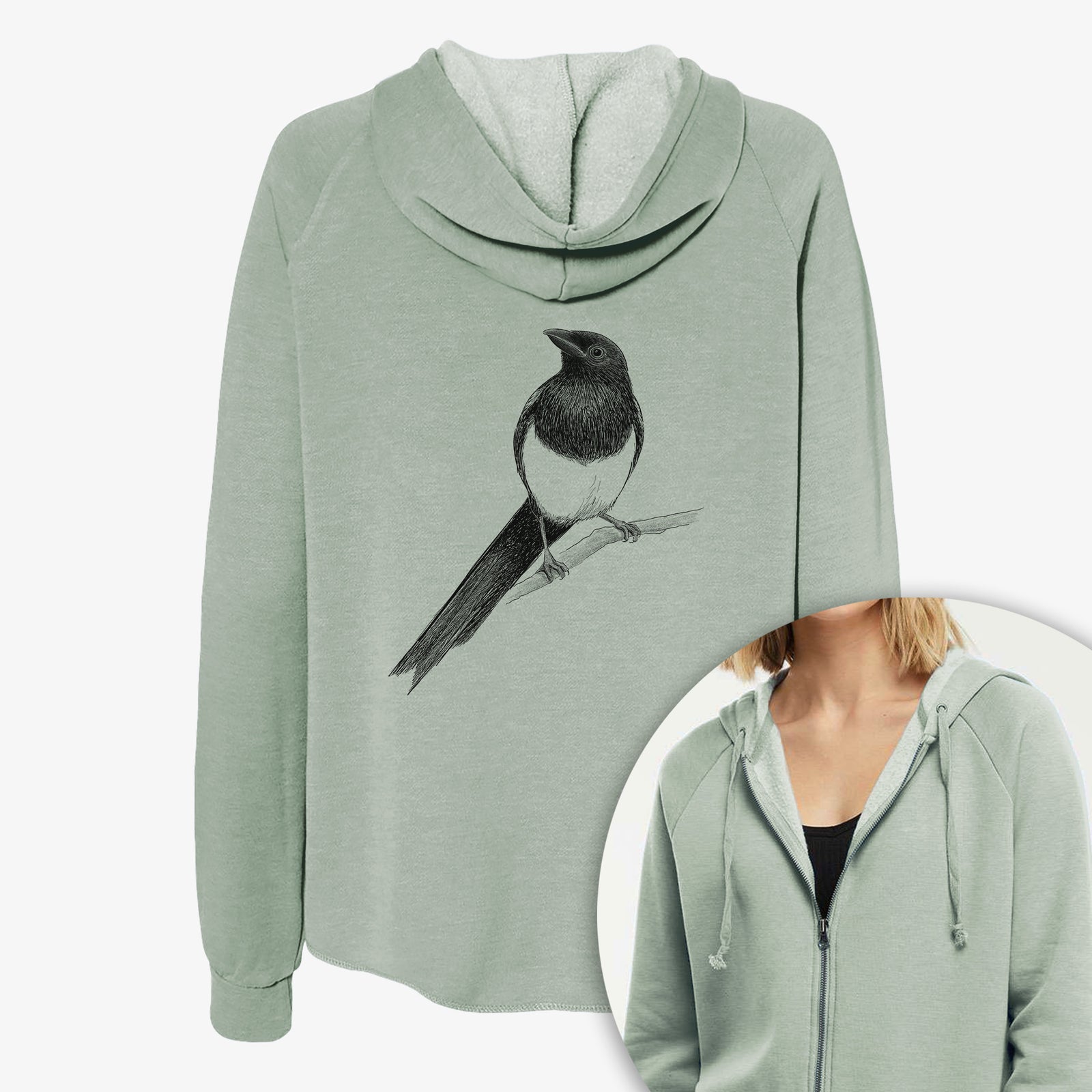 Black-billed Magpie - Pica hudsonia - Women's Cali Wave Zip-Up Sweatshirt