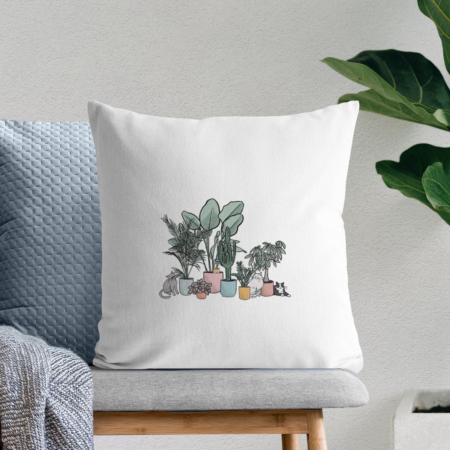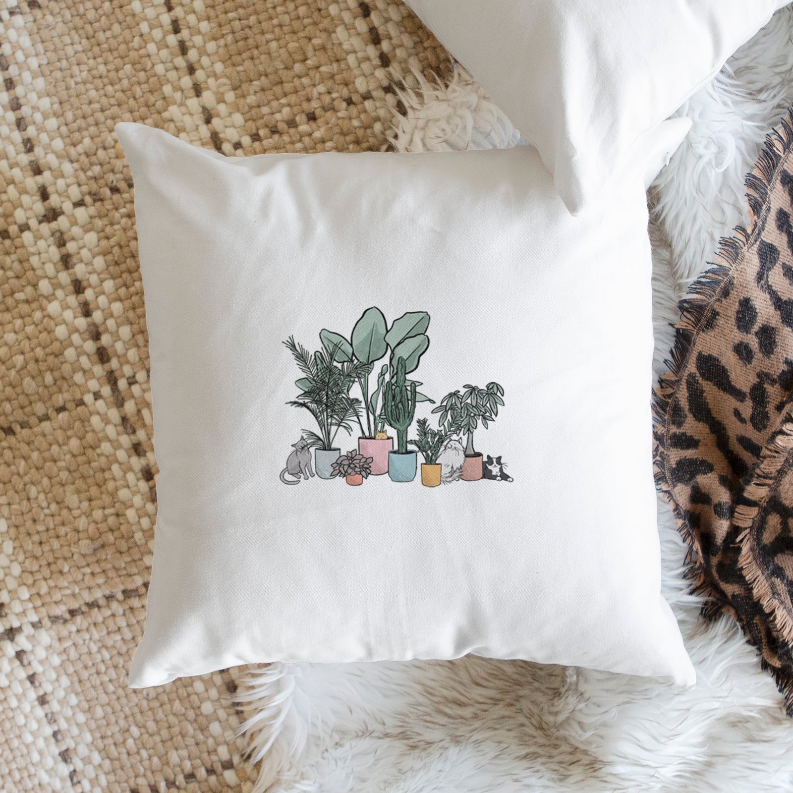 Cats and Plants - Throw Pillow Cover