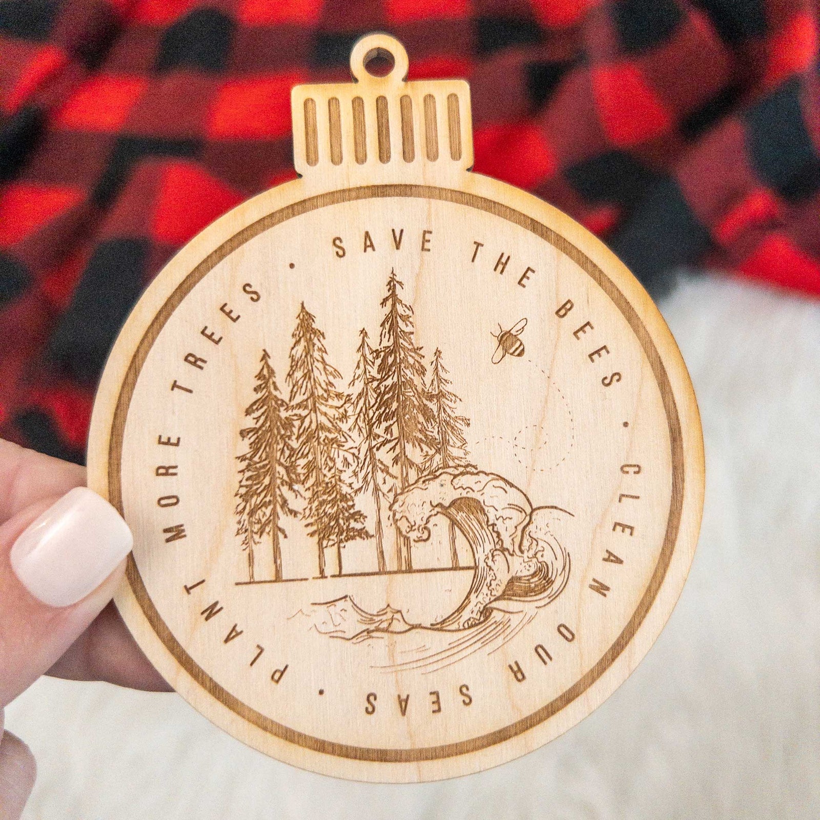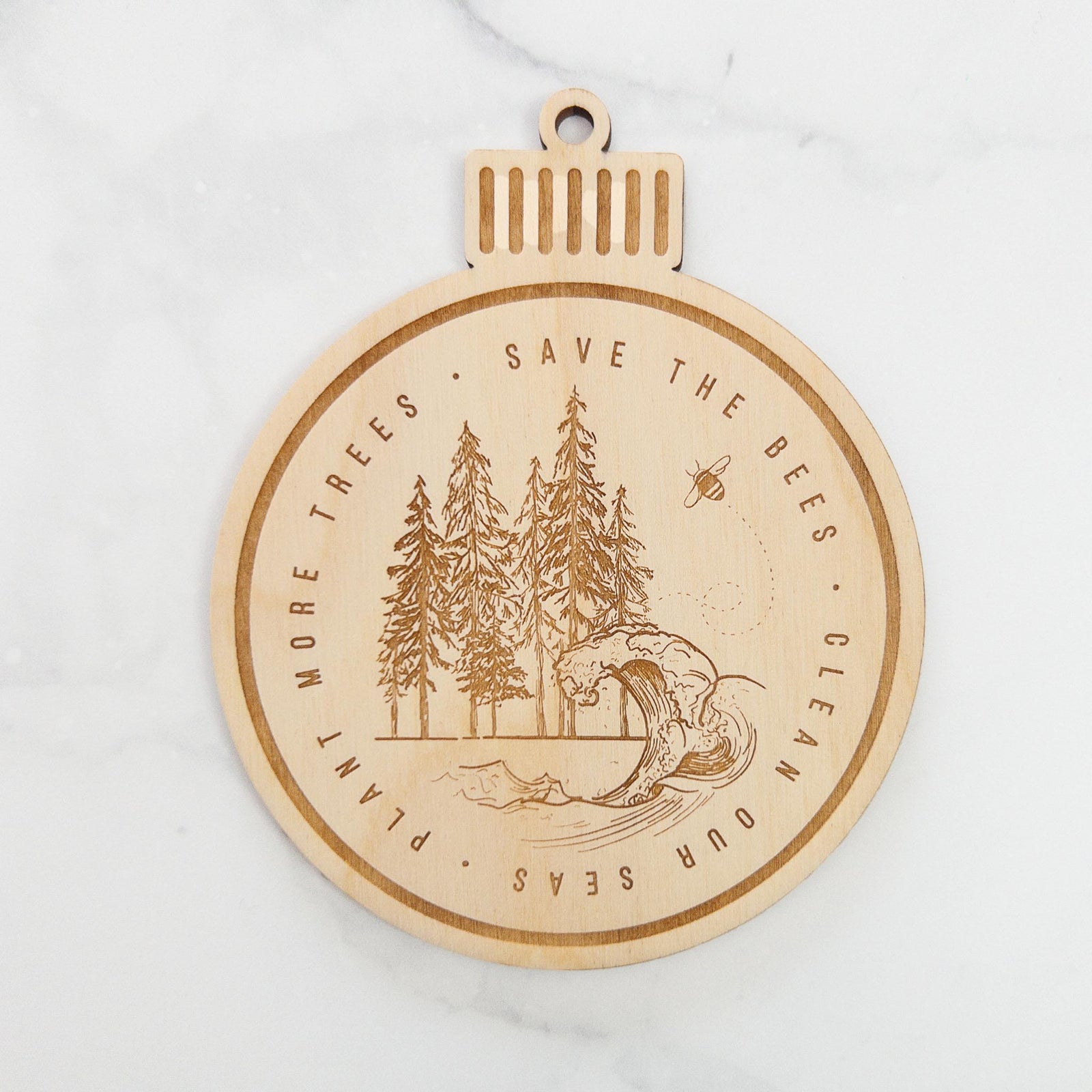 Save the Bees, Clean our Seas, Plant more Trees Wooden Ornament