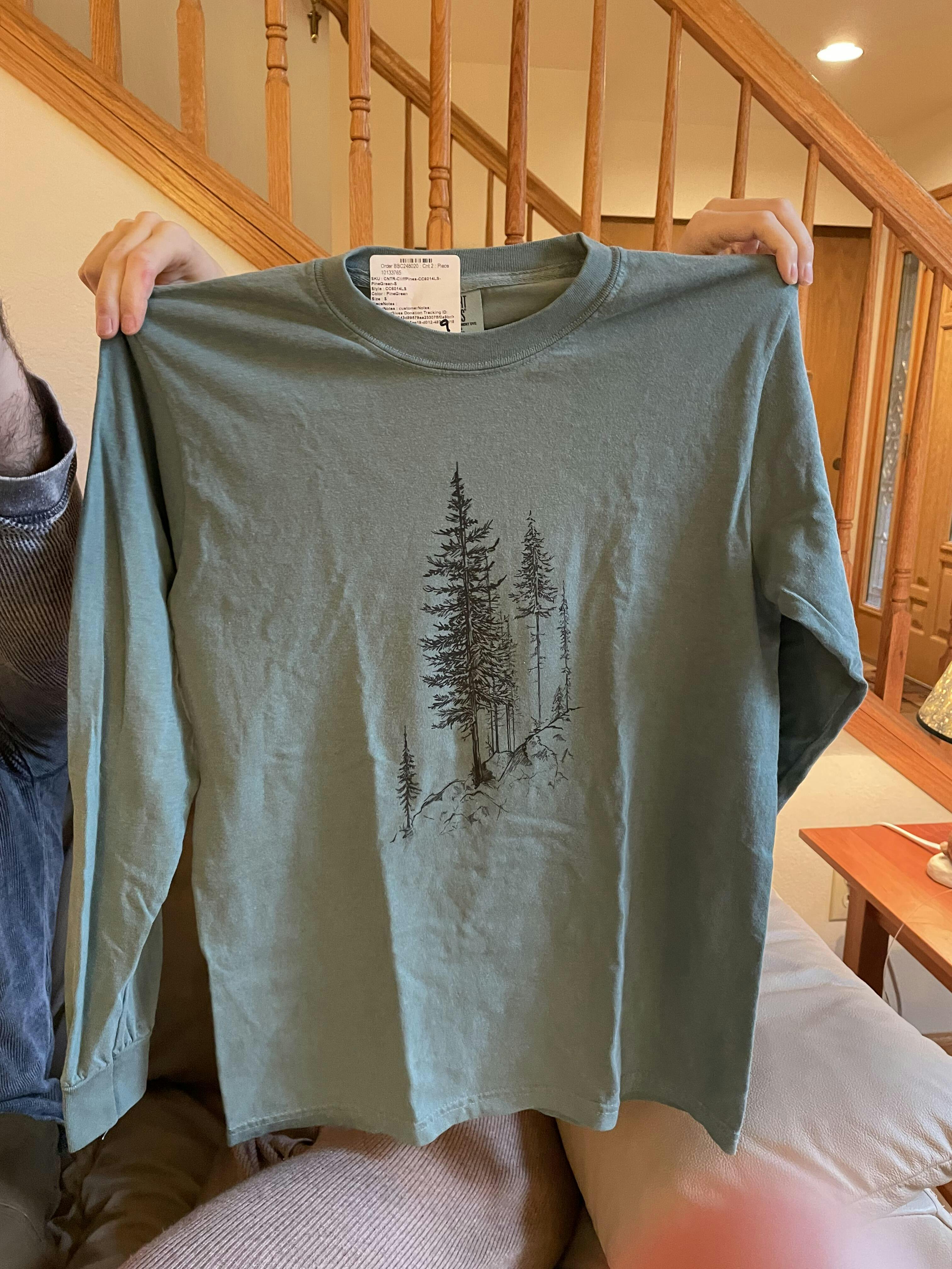 Measurements are taken with the long sleeve laid flat. ‘Chest’ is measured across from armpit to armpit. ‘Length’ is measured from the highest point of the shoulder to the bottom hem. Due to manual measuring and natural fabric variation, actual sizes may vary by ±1 inch.