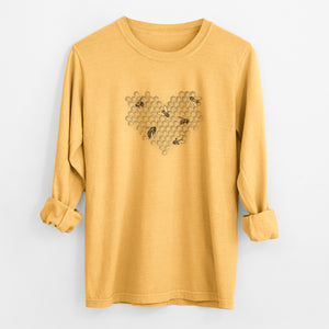 Honeycomb Heart with Bees - Unisex Comfort Colors 100% Cotton Long Sleeve