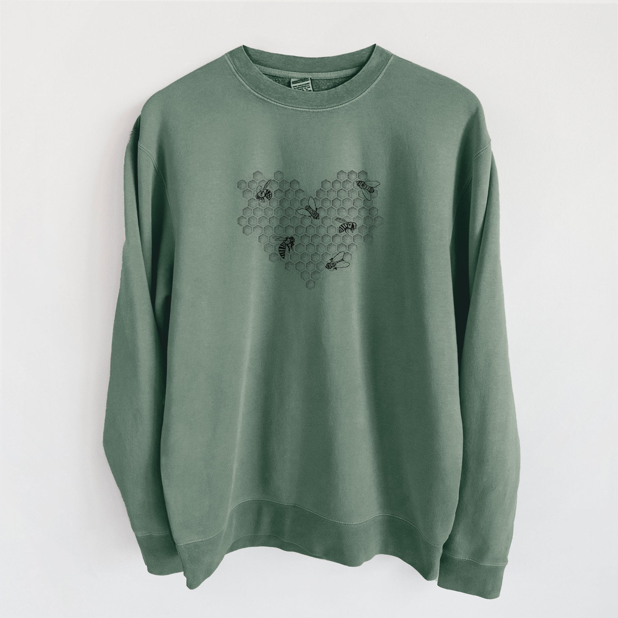 Honeycomb Heart with Bees - Unisex Pigment Dyed Crew Sweatshirt