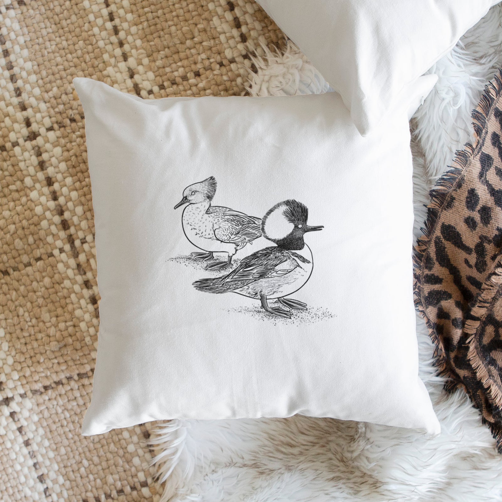 Hooded Mergansers - Lophodytes cucullatus - Throw Pillow Cover