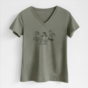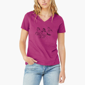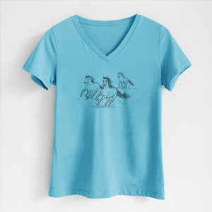 Wild Horses Running - Women's Lightweight Relaxed Fit 100% Cotton V-neck