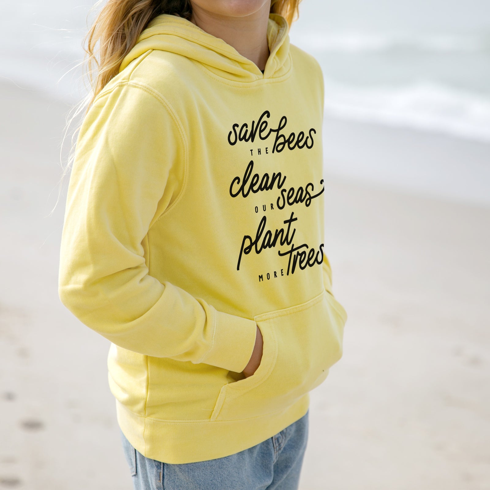 Bees Seas Trees - Typography - Youth Pigment Dyed Hoodie
