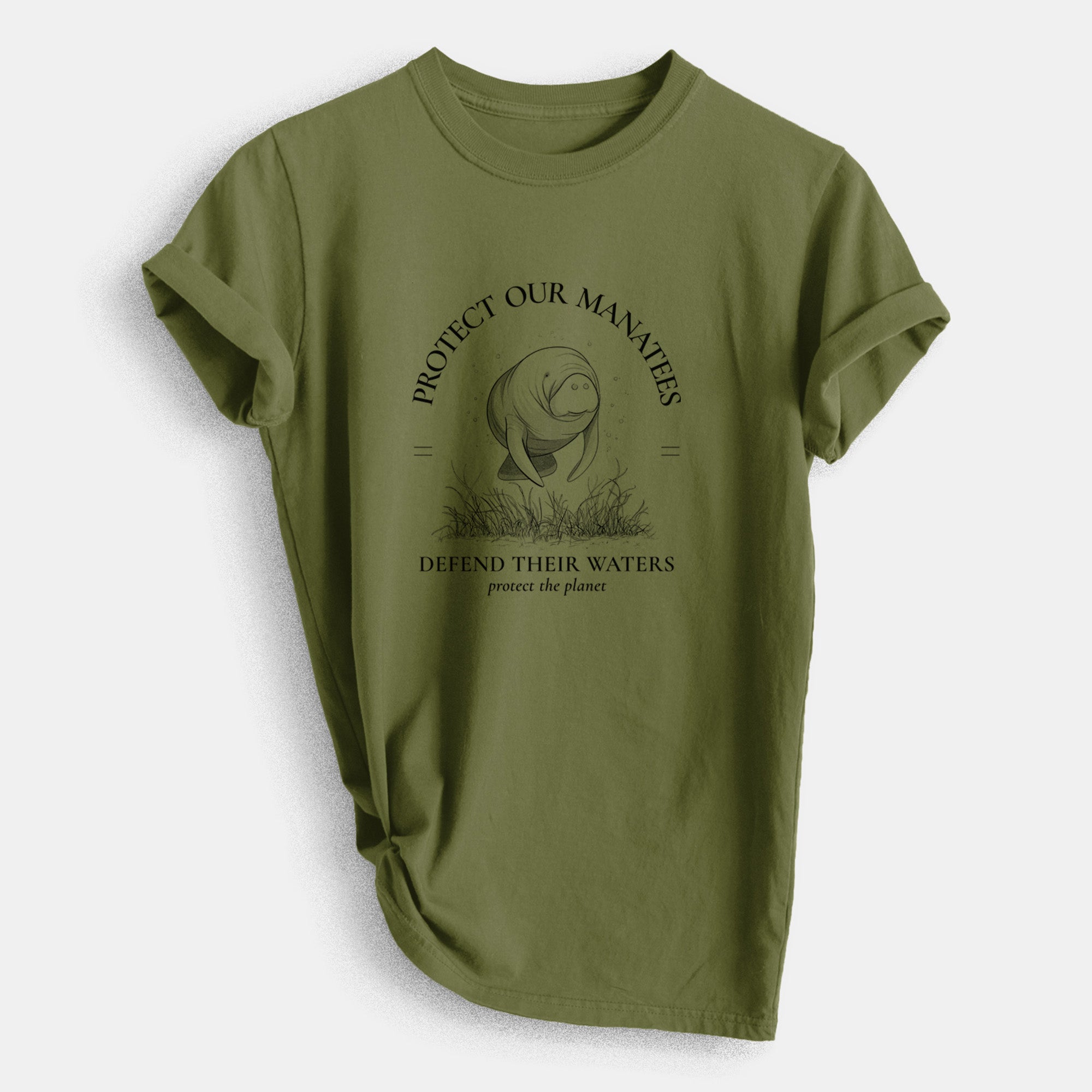 Protect The Manatees - Defend Their Waters - Heavyweight Men's 100% Organic Cotton Tee