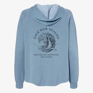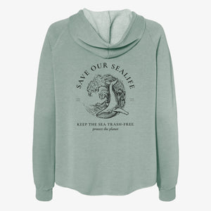 Save our Sealife - Keep the Sea Trash-Free - Women's Cali Wave Zip-Up Sweatshirt