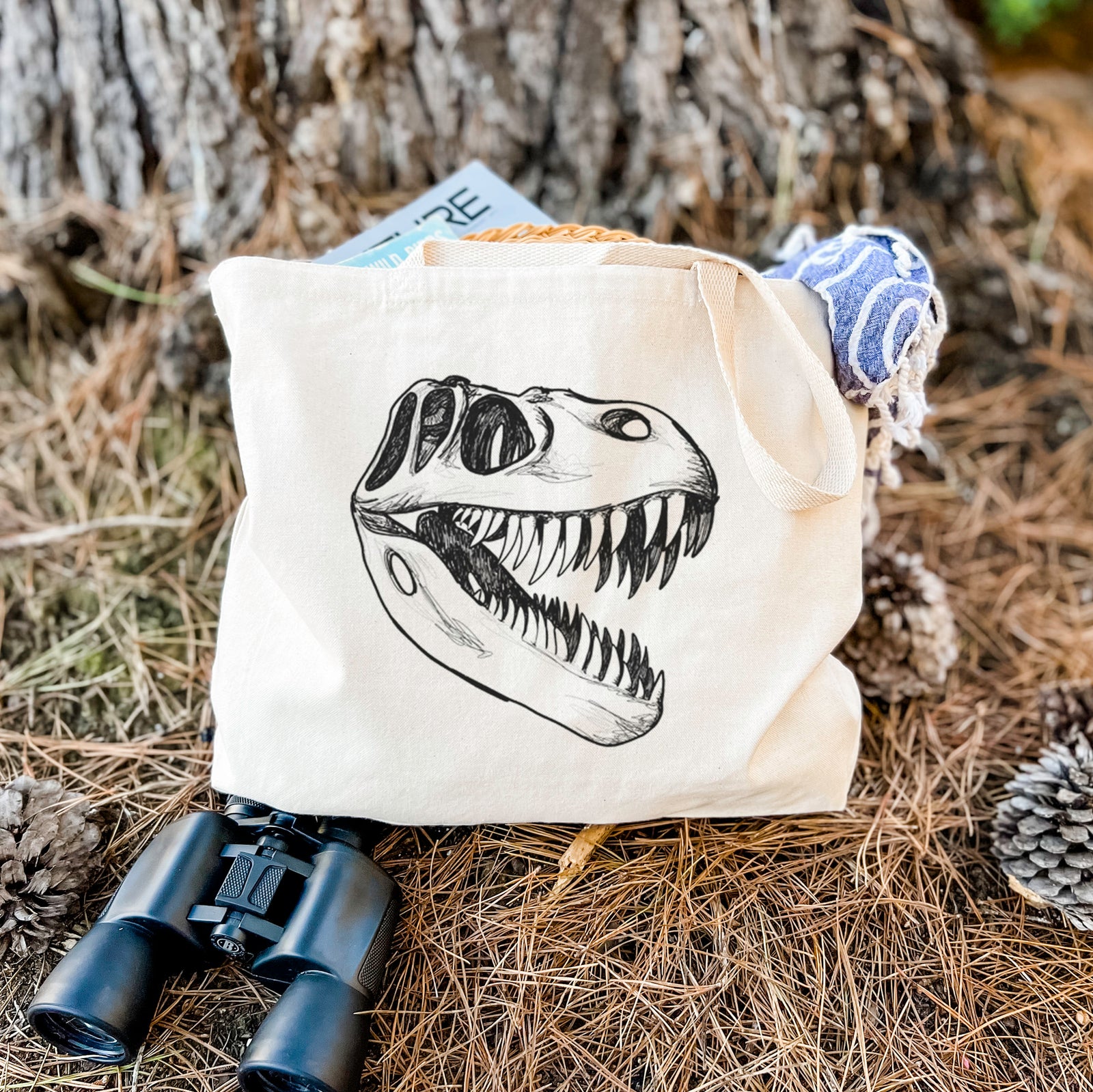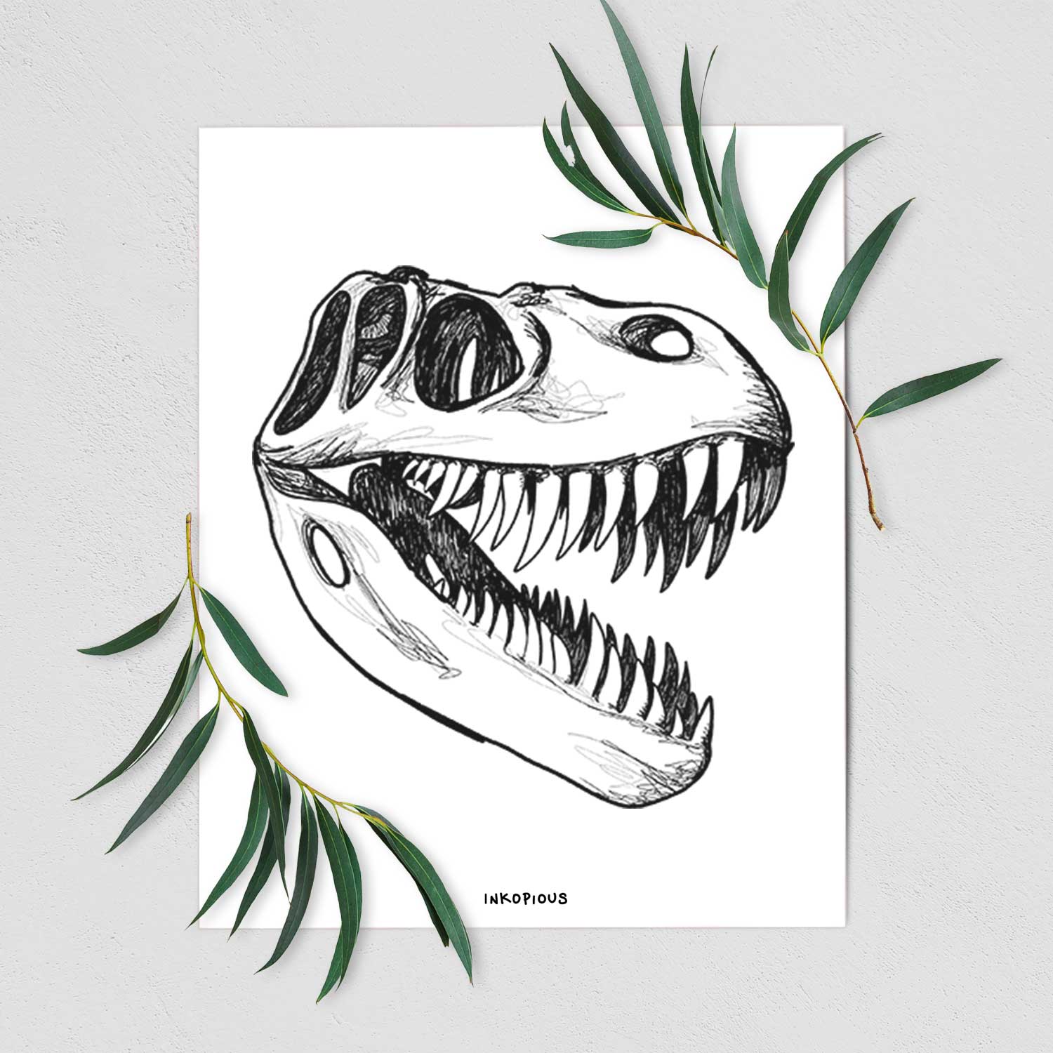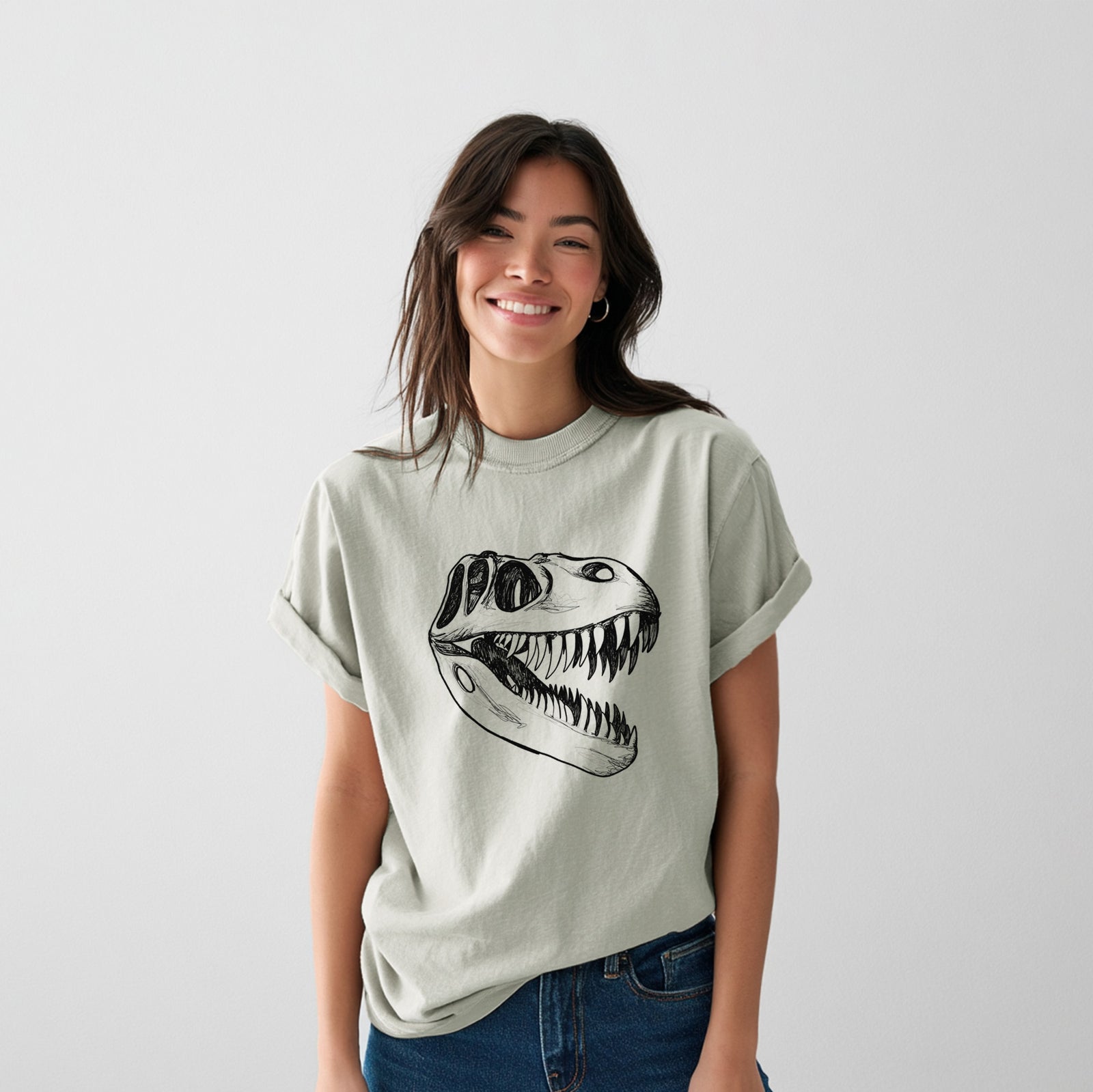 Dive into the prehistoric with our T. Rex Skull design. This detailed hand-drawn skull is perfect for dinosaur lovers.