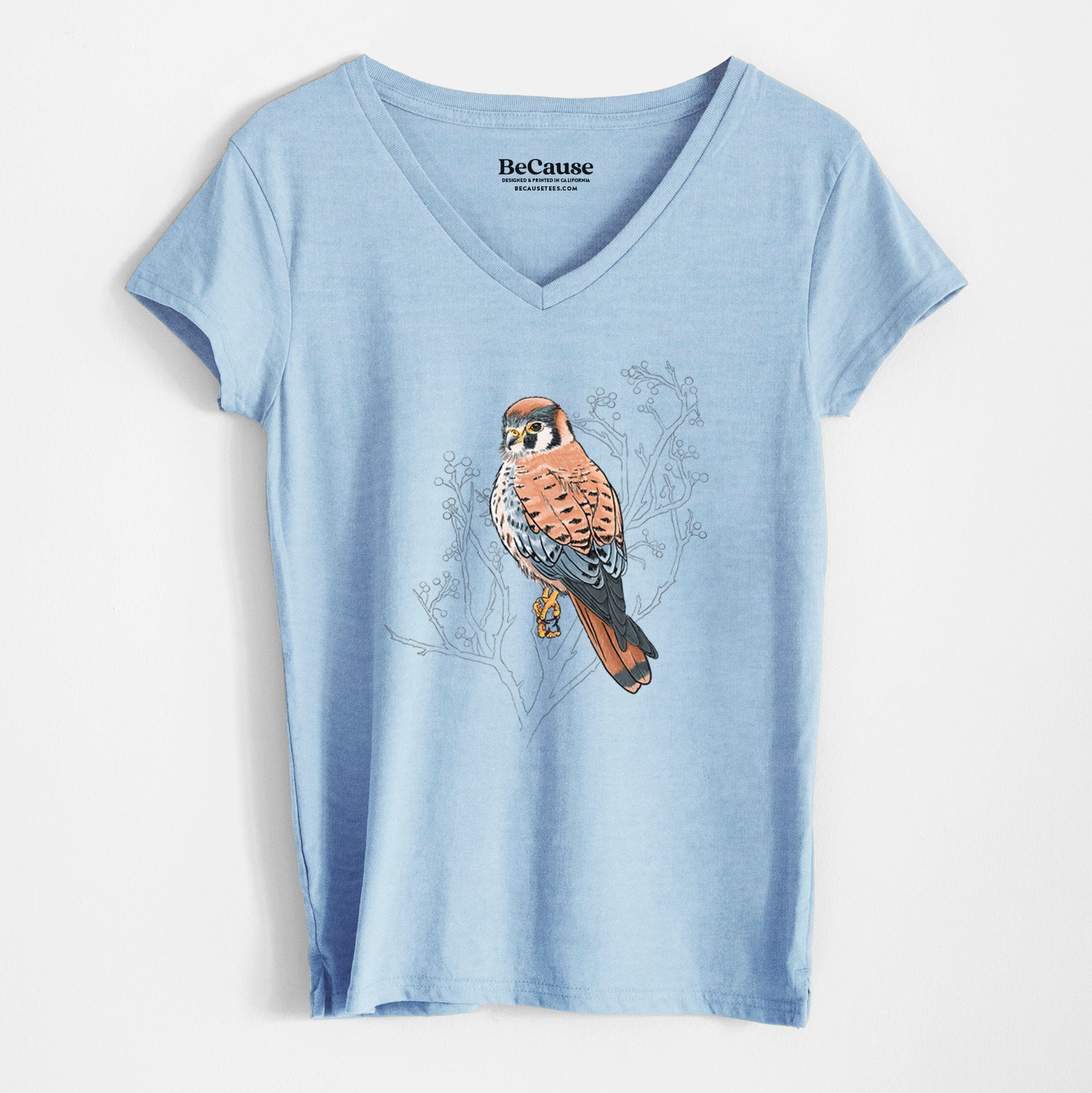 Vibrant American Kestrel - Falco sparverius - Women's 100% Recycled V-neck