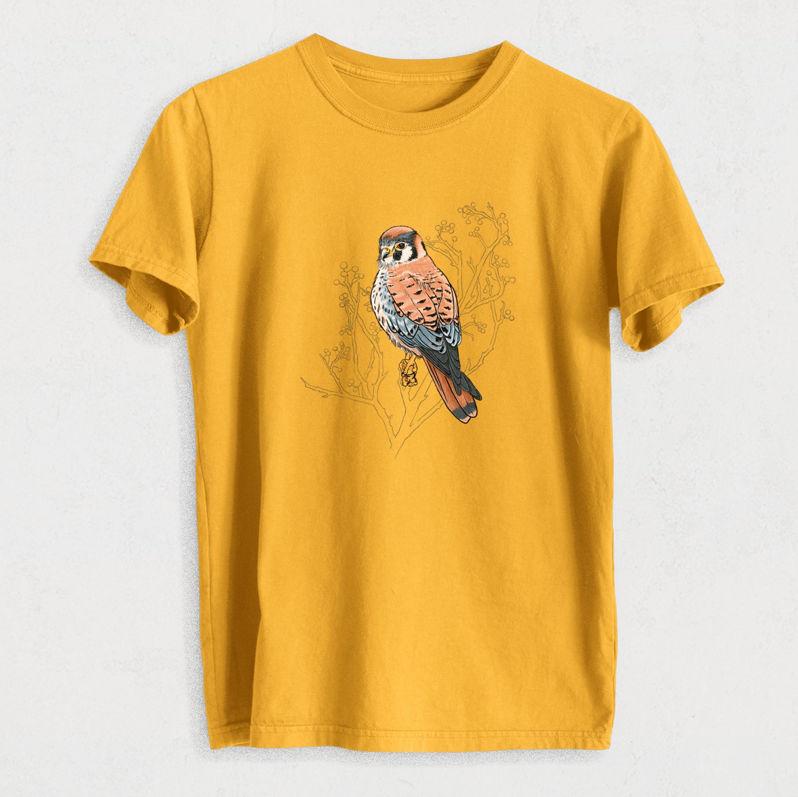 Vibrant American Kestrel - Falco sparverius - Heavyweight Men's 100% Organic Cotton Tee