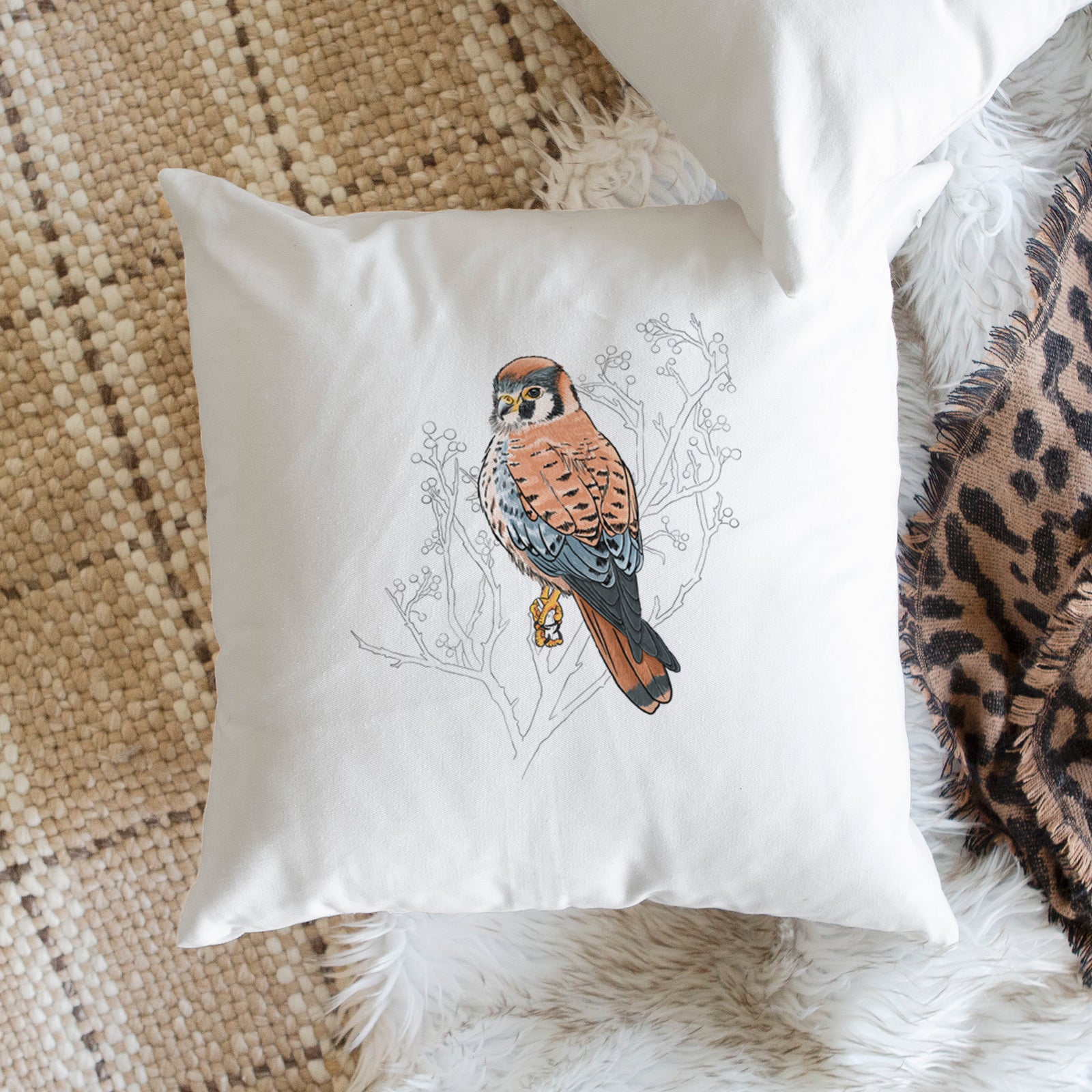 Vibrant American Kestrel - Falco sparverius - Throw Pillow Cover