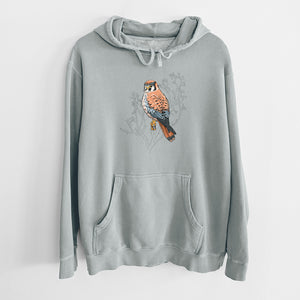 Vibrant American Kestrel - Falco sparverius - Unisex Pigment Dyed Hoodie