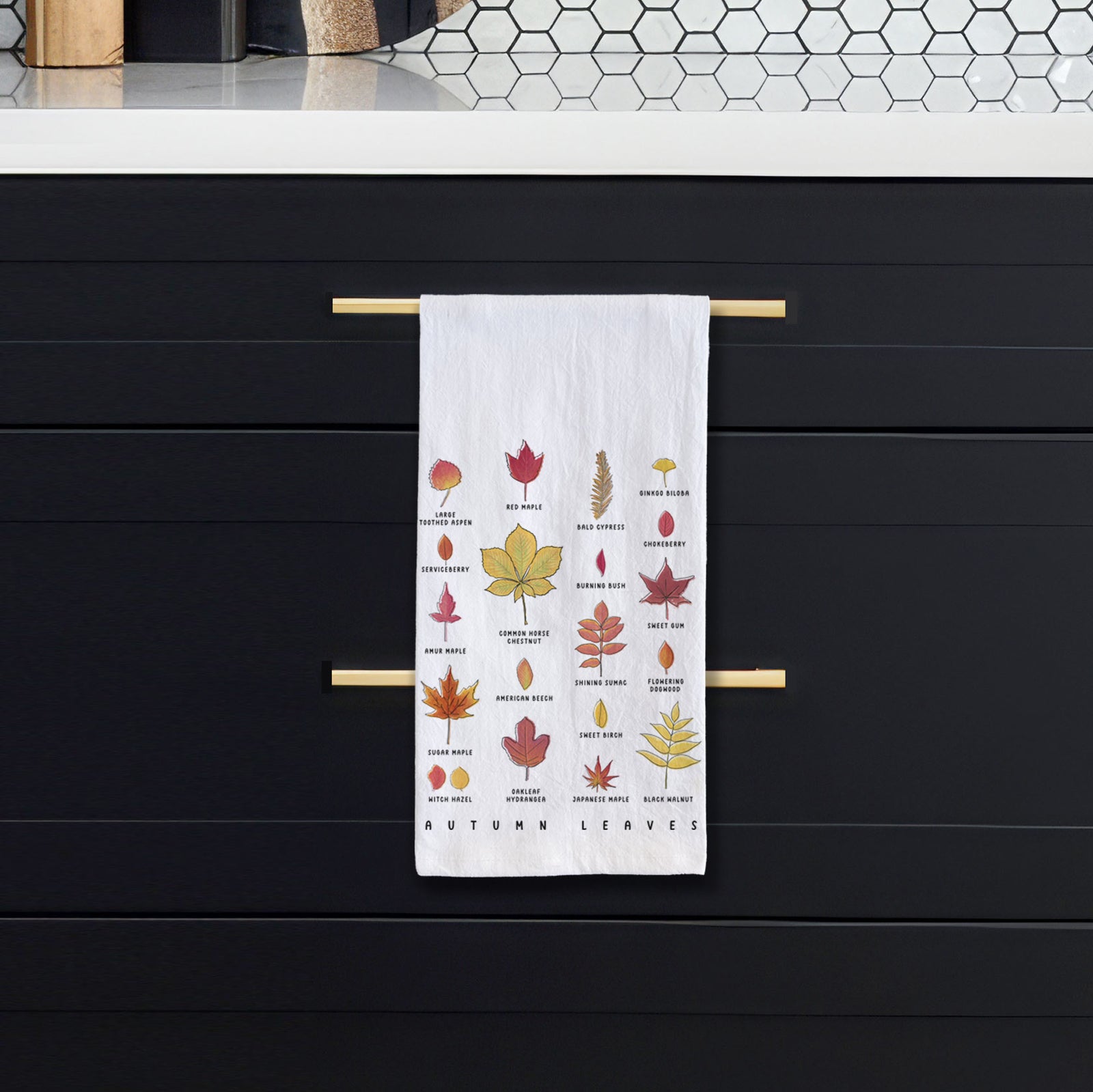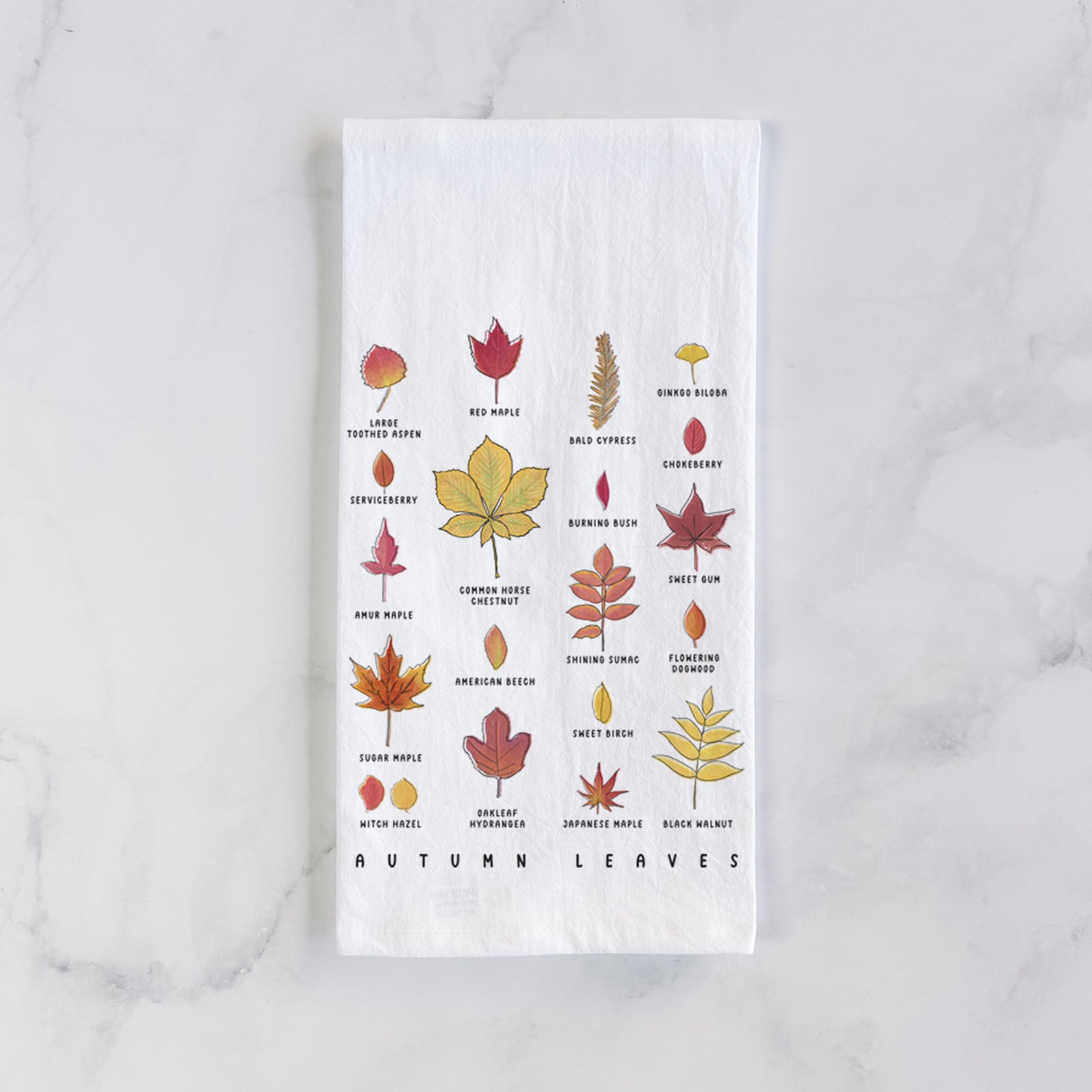 Vibrant Autumn Leaves Chart Tea Towel