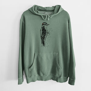 Downy Woodpecker - Picoides pubescens - Unisex Pigment Dyed Hoodie