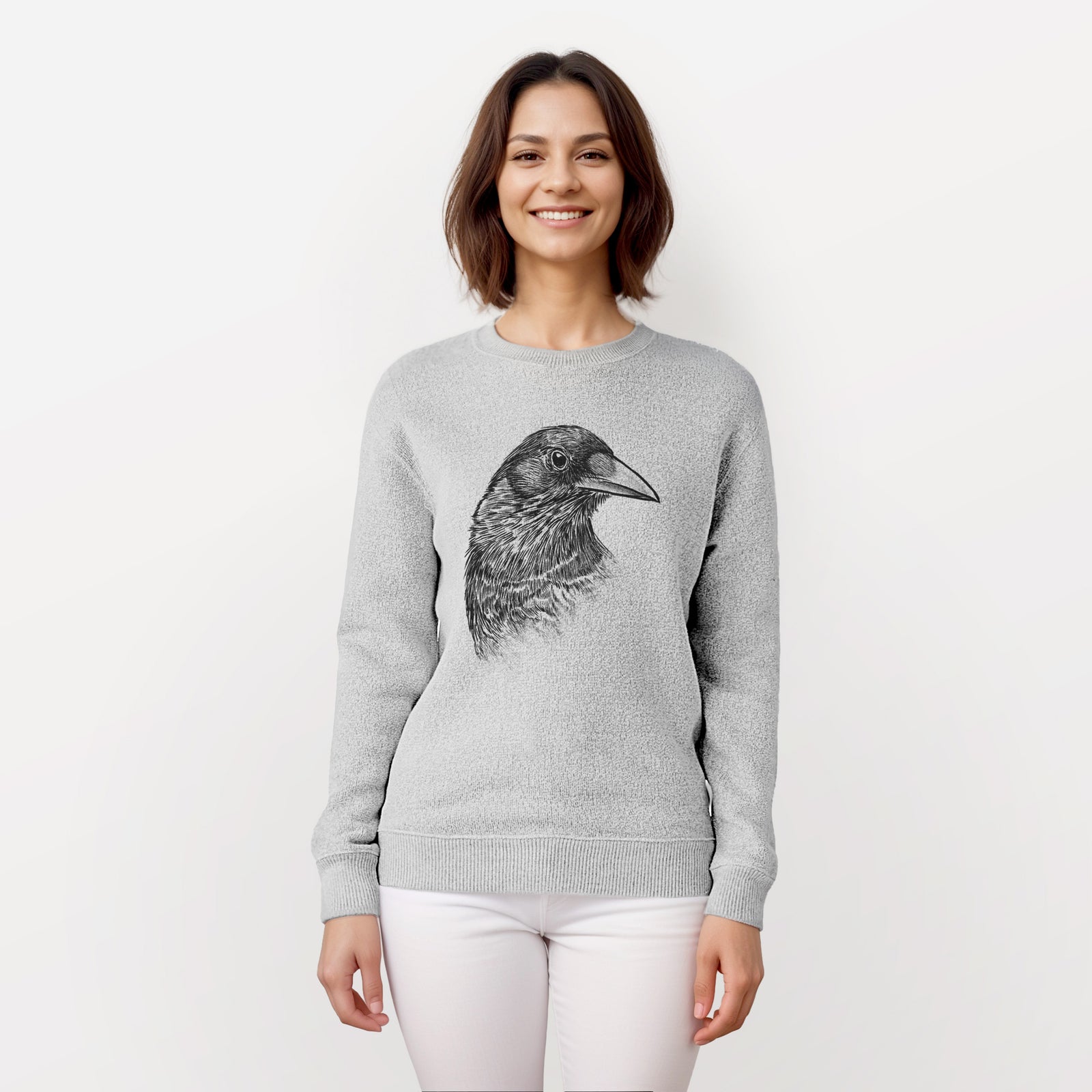 American Crow Bust - Corvus brachyrhynchos - Knit Sweatshirt