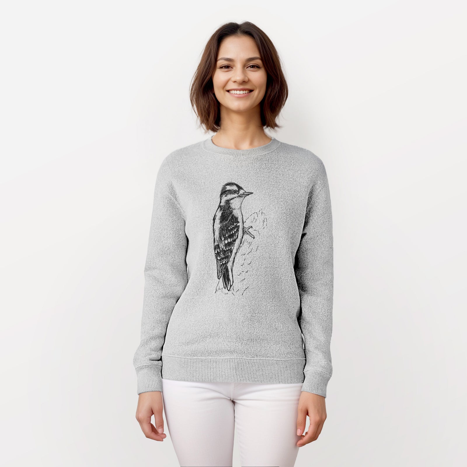 Downy Woodpecker - Picoides pubescens - Knit Sweatshirt