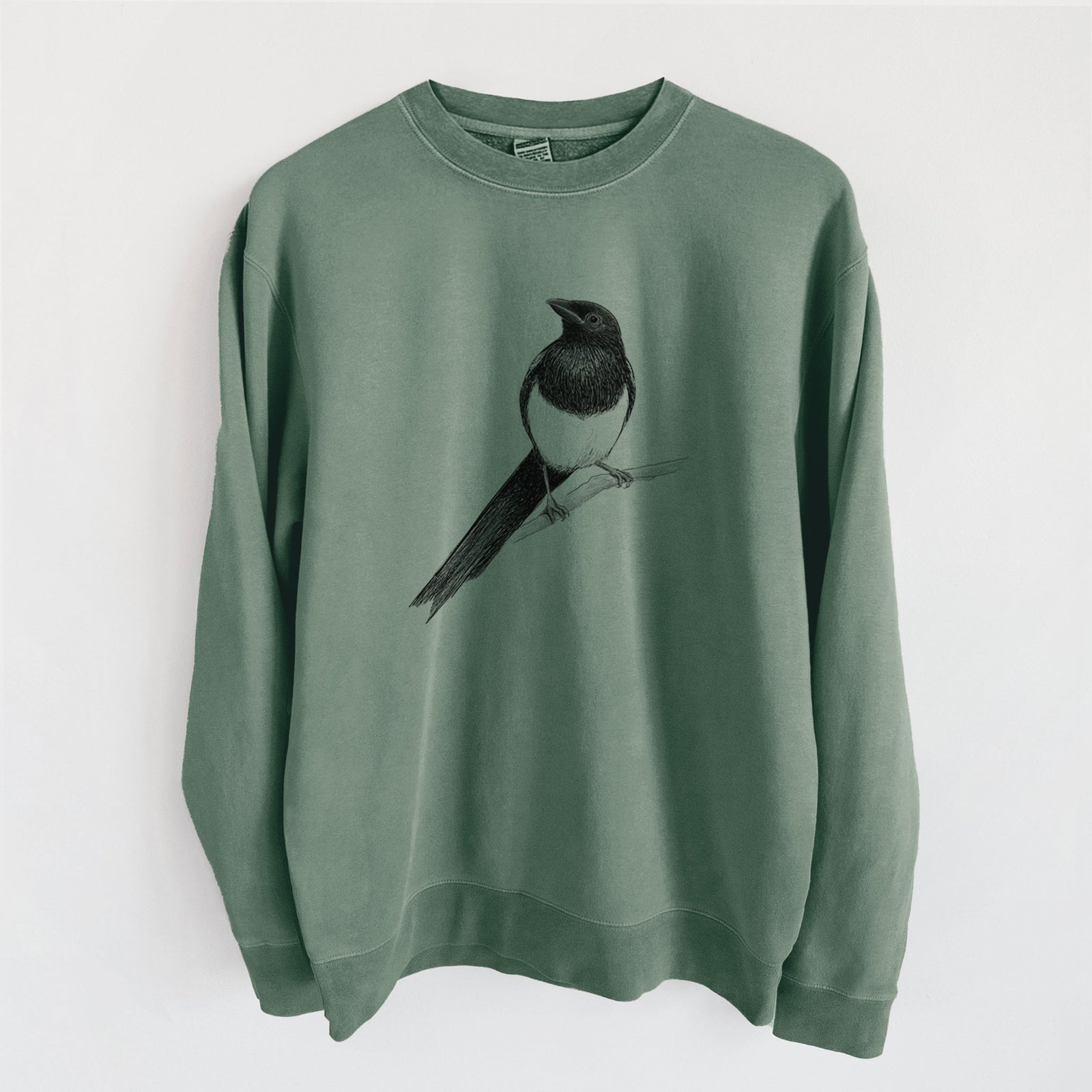 Black-billed Magpie - Pica hudsonia - Unisex Pigment Dyed Crew Sweatshirt