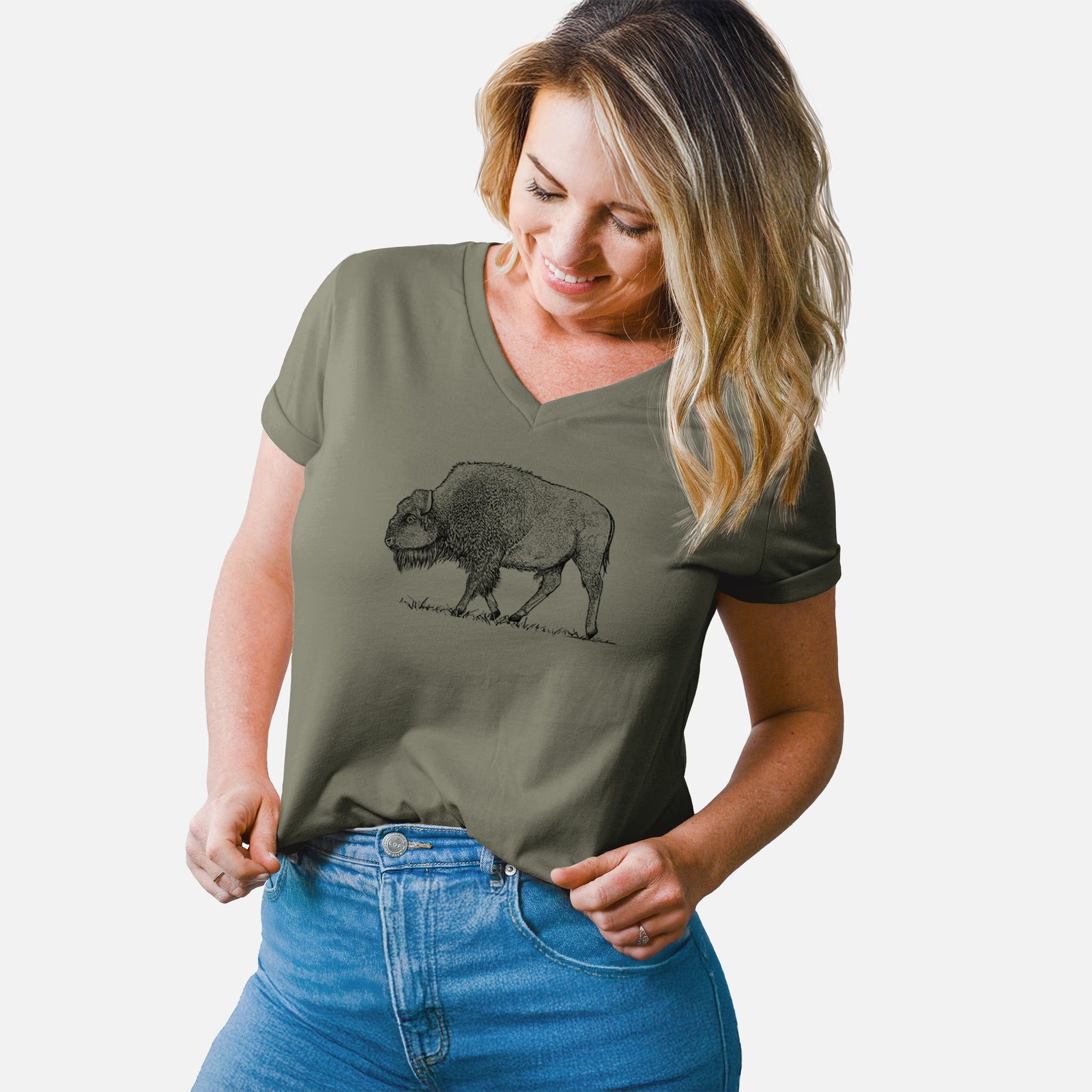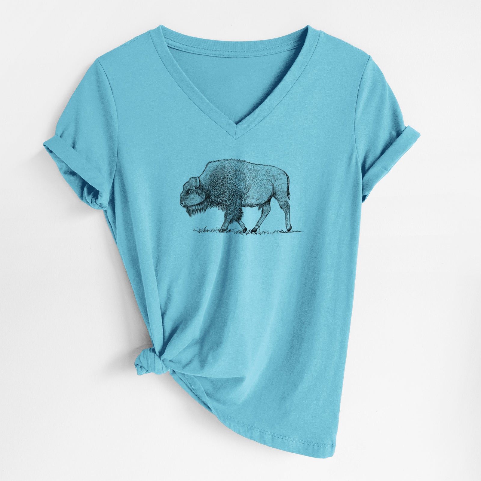 American Bison / Buffalo - Bison bison - Women's Lightweight Relaxed Fit 100% Cotton V-neck