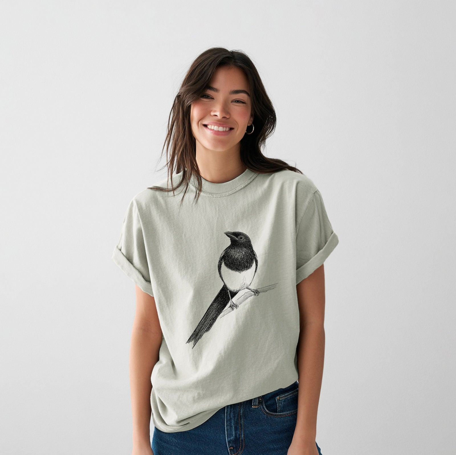 Black-billed Magpie - Pica hudsonia - Heavyweight Men's 100% Organic Cotton Tee