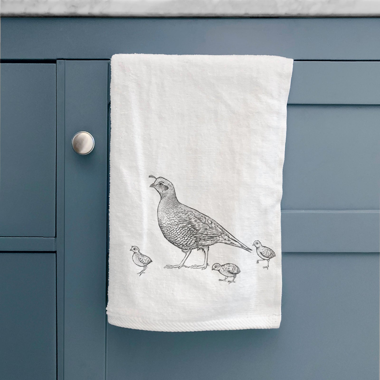 California Quail with Babies - Callipepla californica Premium Decorative Hand Towel