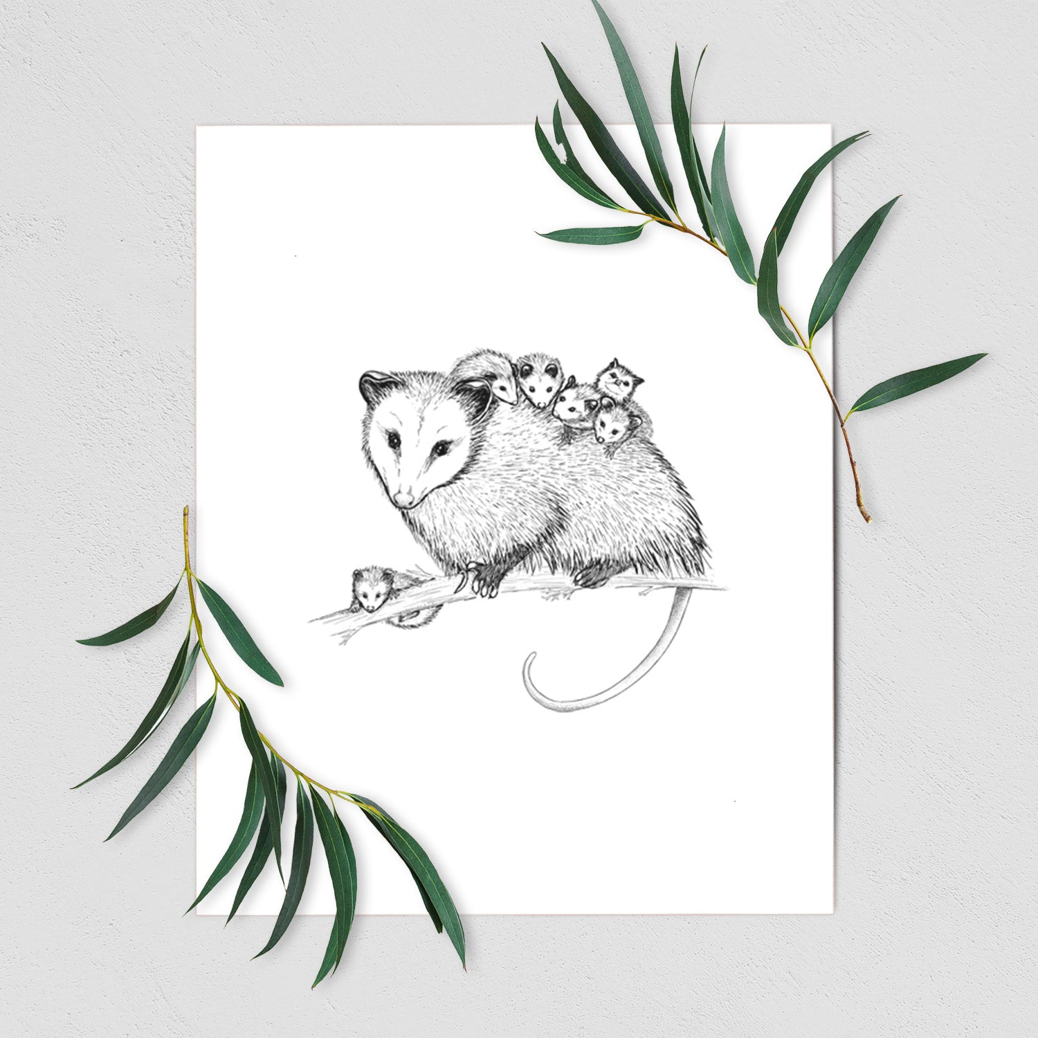 Mama Opossum with Babies - Fine Art Print