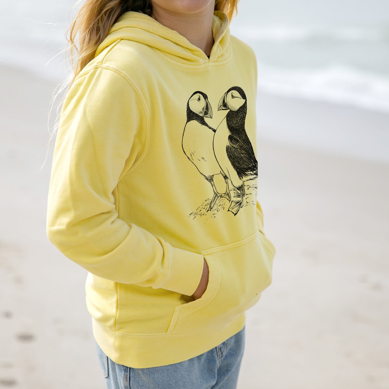 Atlantic Puffins Pair - Fratercula arctica - Youth Pigment Dyed Hoodie
