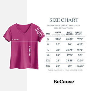 Women's Lightweight Relaxed Fit 100% Cotton V-neck T-shirt Size Chart