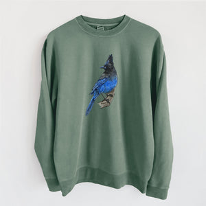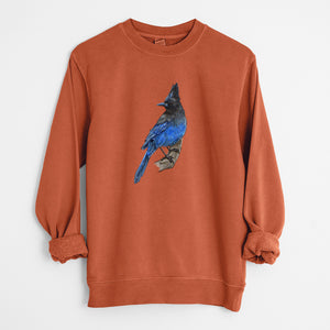 Vibrant Coastal Steller's Jay - Cyanocitta stelleri - Unisex Pigment Dyed Crew Sweatshirt