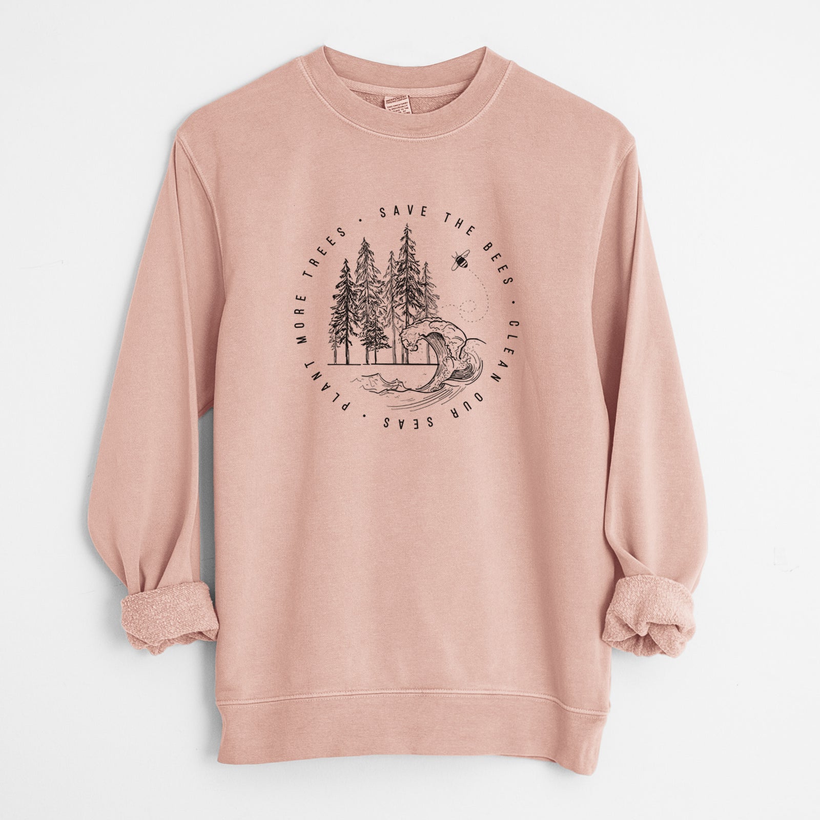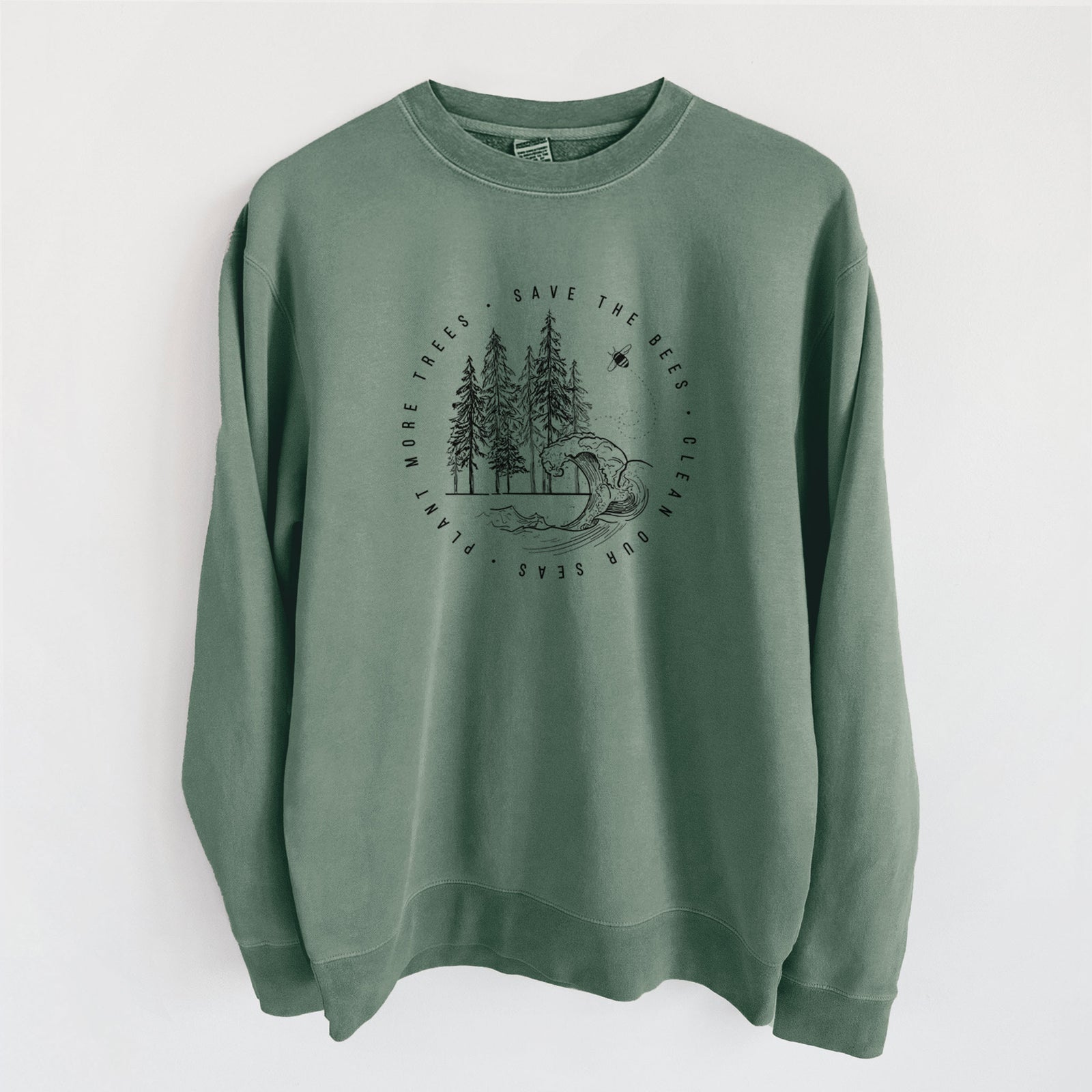 Save the Bees, Clean our Seas, Plant more Trees - Unisex Pigment Dyed Crew Sweatshirt
